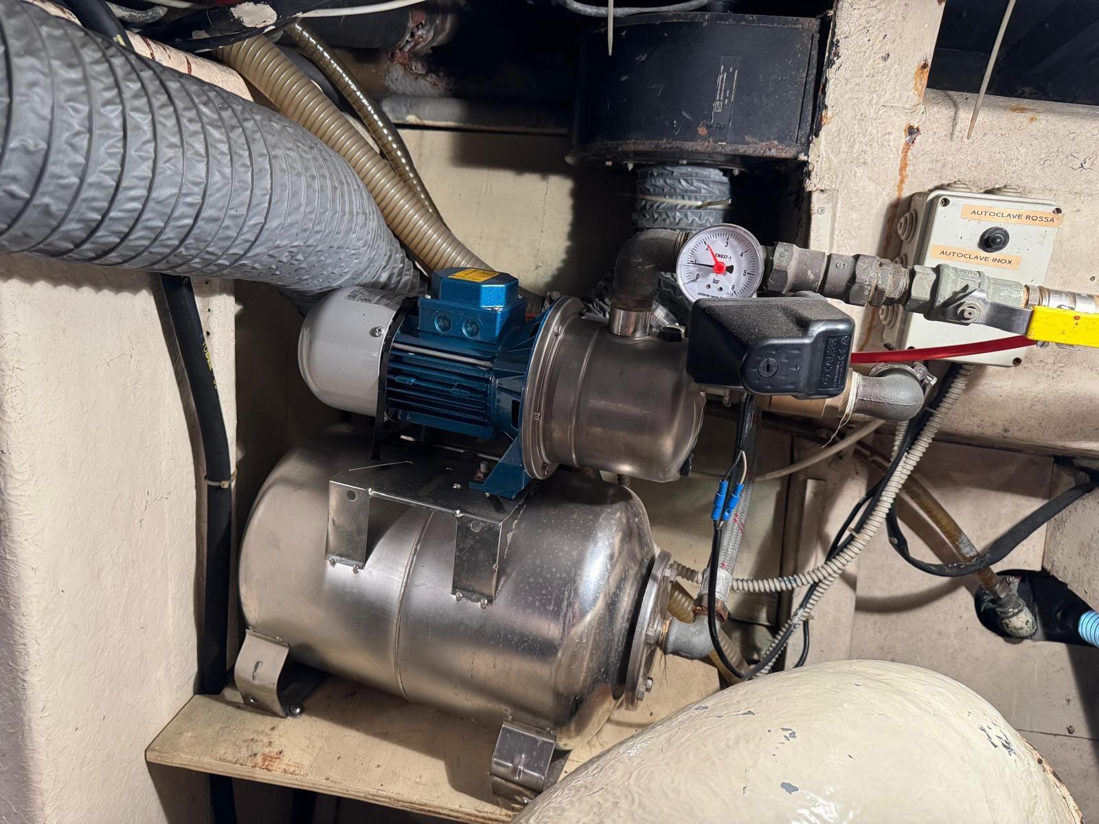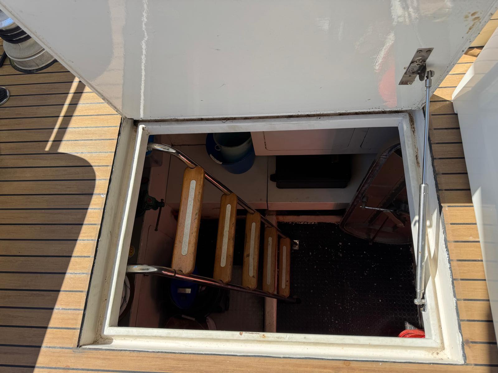 Engine Alarm, 2 Water pressure pump, 8 Batteries (4 nuove 2024 - 4 nuove 2025), Teak Side Decks, Guard rail, Deck Shower, Directional Spotlight, Hydraulic Flaps, Flaps Indicators, Courtesy Lights, Gangway, Platform (maggiorata in teak), Automatic Bilge Pump, Entry door, 2 Side door, Teak Cockpit, Shorepower connector, Water harbor connector system, Rollbar, Electric Windlass, swimming ladder, Saddles for tender, cockpit table, Horn, Stern Winches.