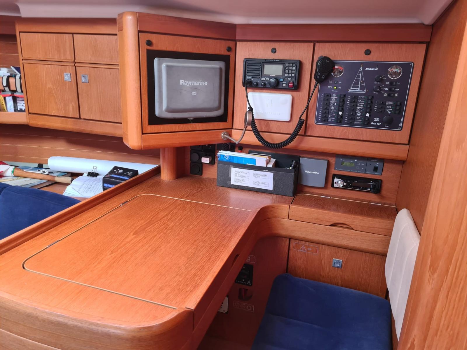 AIS (2022), Rudder angle indicator, Radar Antenna, Display, Autopilot (Lewmar), Plotter with GPS antenna (Raymarine nuovo 2022), VHF Radio (Icom), Wind Station (Raymarine).