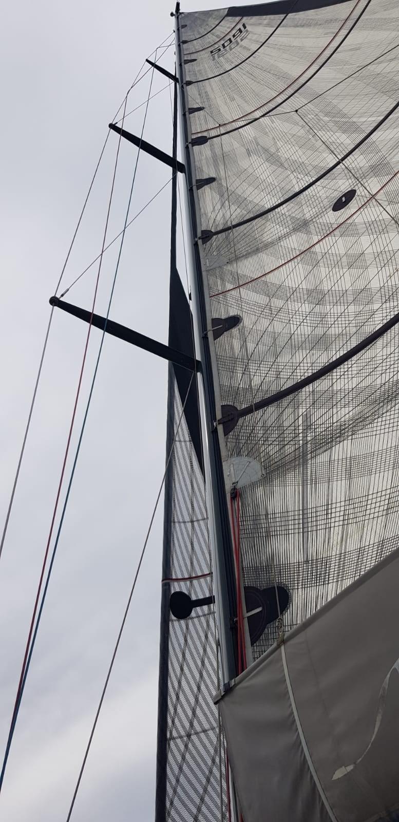 Gennaker equipment (con calza), Jib Furling System (Furlex 300TD sottocoperta), Lazy Bag, Lazy Jack, Backstay tensioner, Mainsheet traveller, Vang.