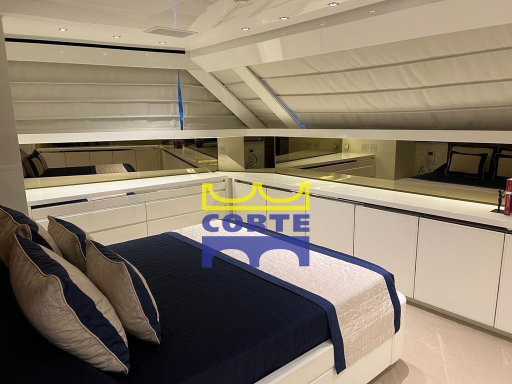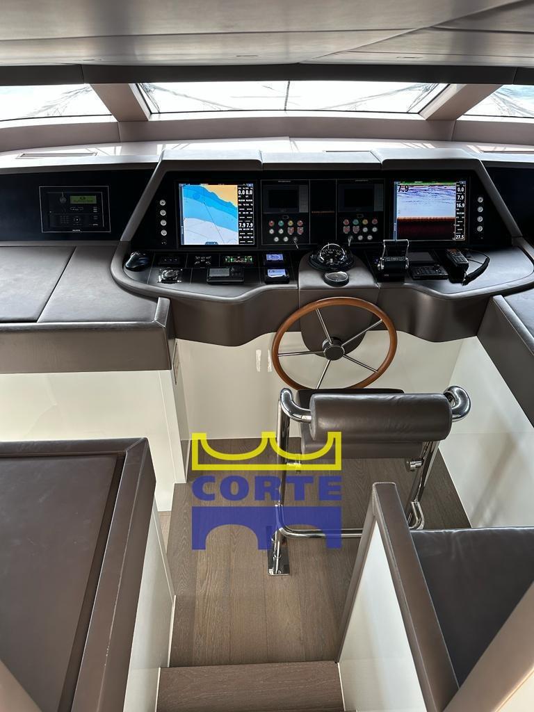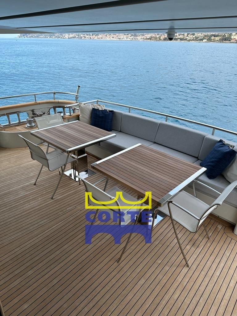 Fume/Gas Detector, Engine Alarm, Bilge Alarm, 4 Battery charger, Deck Shower, Directional Spotlight, Tender Garage, Hard top, Fire Extinguishing System, Courtesy Lights, Jet-Ski (Yamaha Sport jet), Gangway (elettroidraulica a scomparsa), Platform (poppa in teak), Entry door, 2 Side door, Teak Cockpit, Shorepower connector, Water harbor connector system, 2 Electric Windlass, swimming ladder, Stabilizers (Pinne Cmc zero speed), cockpit table, Tender (Williams 435), 2 Stern Winches, 2 Bow Winches.
