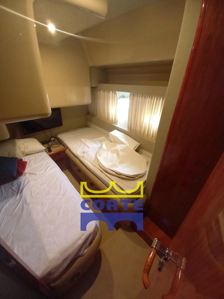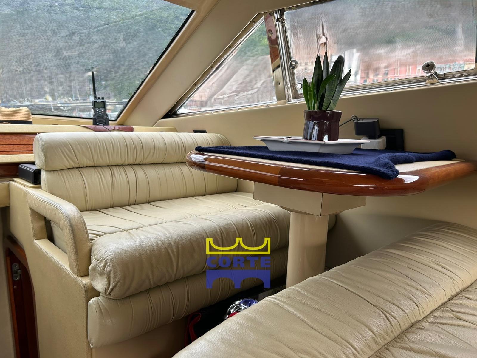 Engine Alarm, Bilge Alarm, Water pressure pump, Deck Shower, Twin Steering, Hydraulic Flaps, Tender Crane (passerella), Fire Extinguishing System, Underwater lights, Gangway (idraulica), Platform (di poppa allungata), Automatic Bilge Pump, Entry door, Teak Cockpit, Shorepower connector, Water harbor connector system, Rollbar, Electric Windlass, swimming ladder, Horn, Bow Winches.