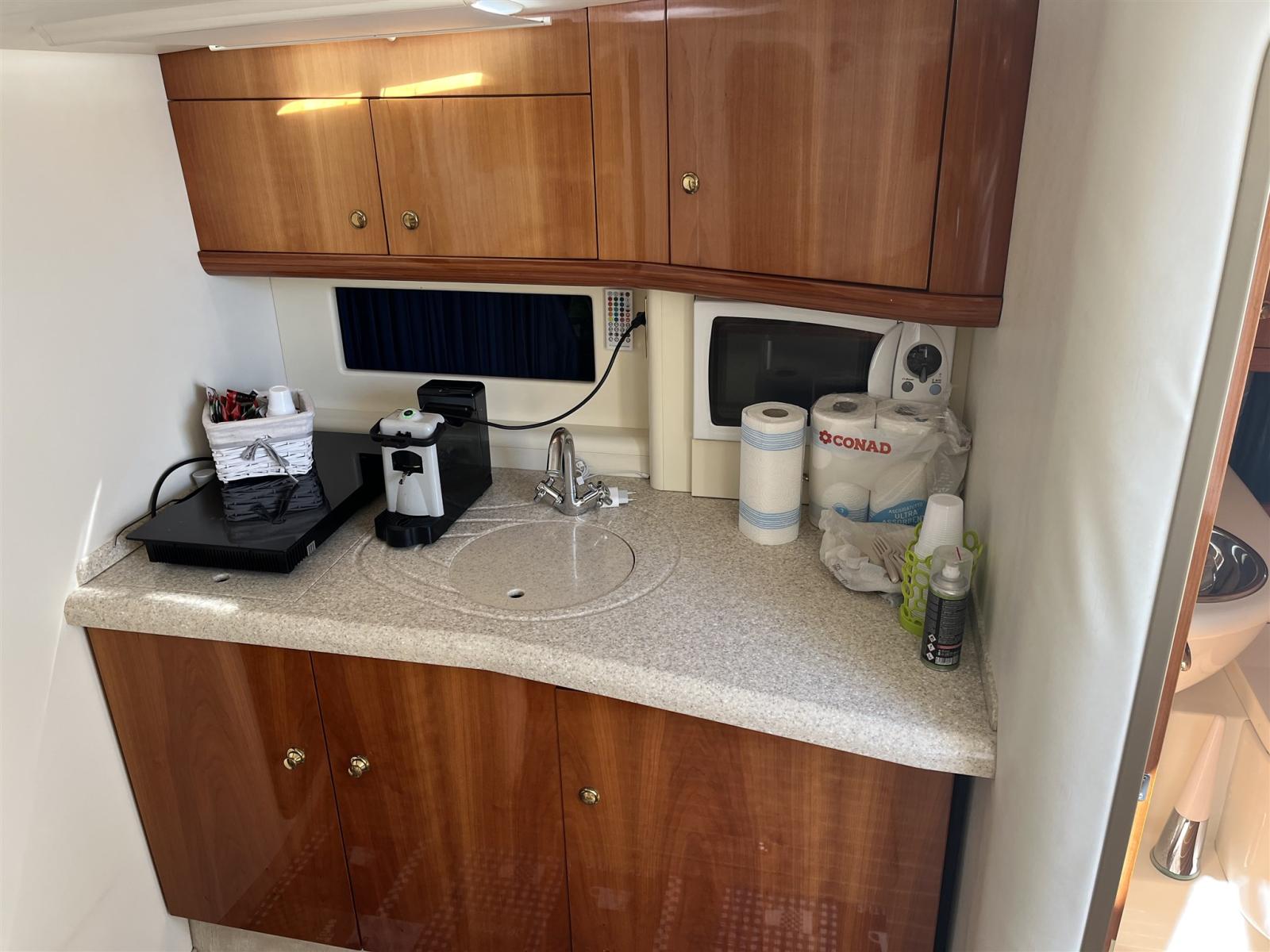 Galley (sia elettrica che a gas - 2 fuochi), Deck Refrigerator, Coffee Machine.