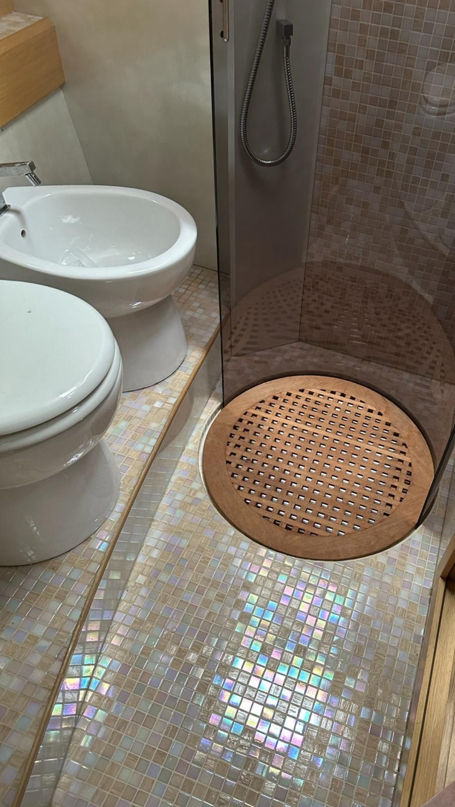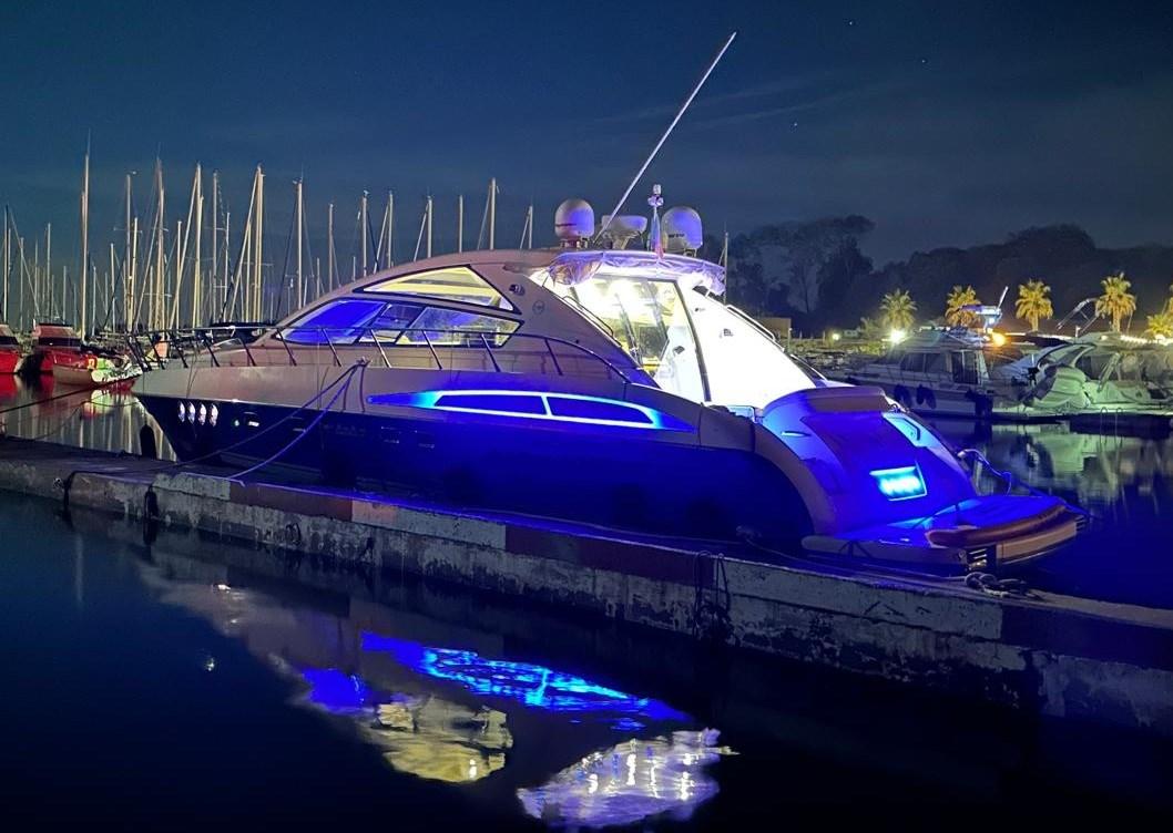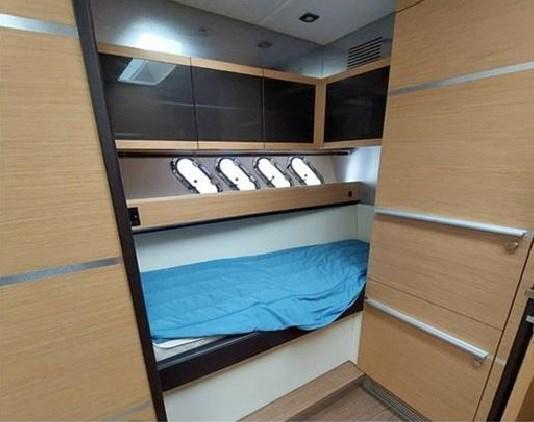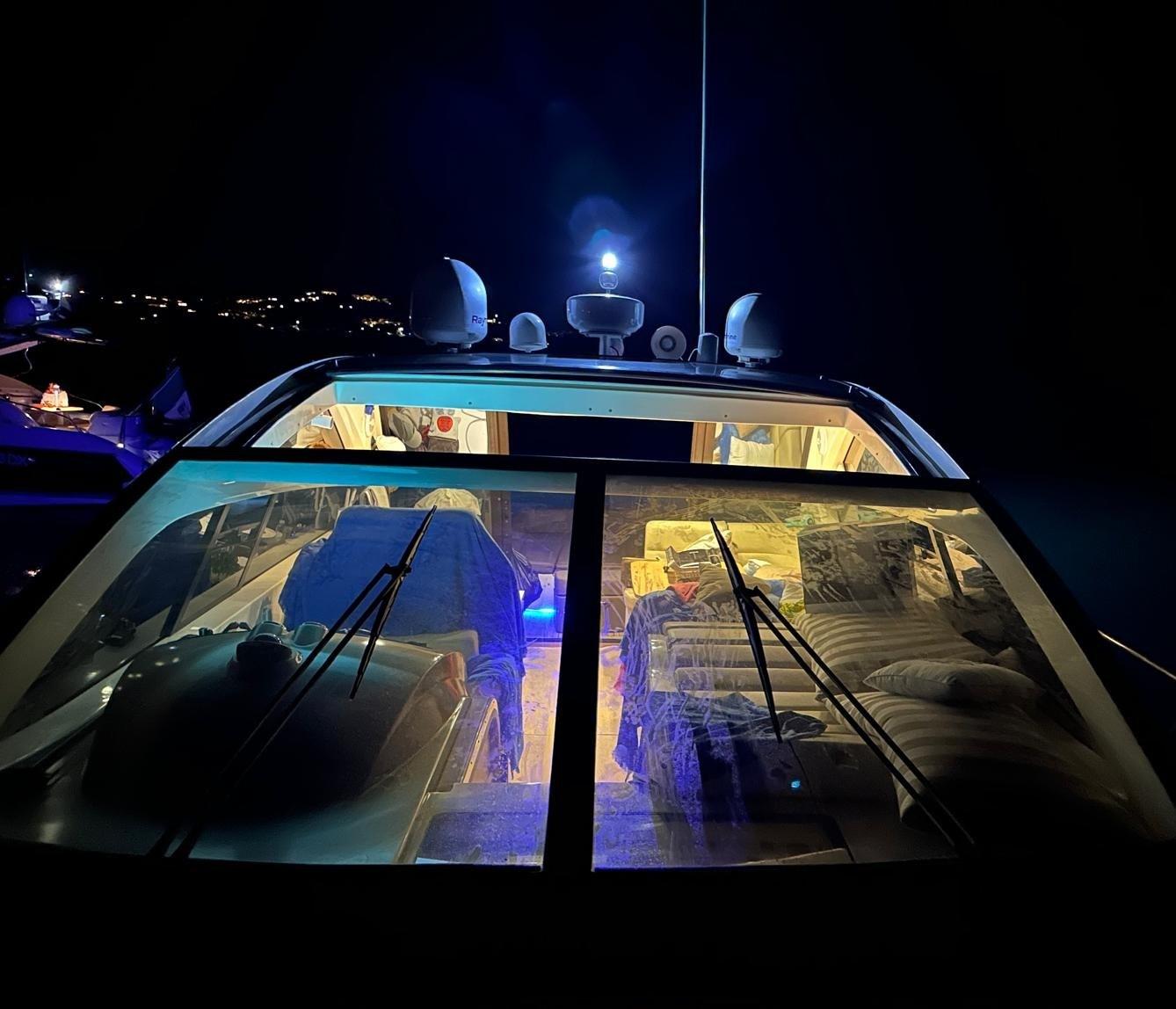 Engine Alarm, Bilge Alarm, Alternator, Electric Engine Compartment Opening, Water pressure pump, Special Colour (CARTA ZUCCHERO CANGIANTE), Deck Shower, Directional Spotlight, Electric Flaps, Hard top, Fire Extinguishing System, Courtesy Lights, Gangway, Platform, Automatic Bilge Pump, Manual Bilge Pump, Entry door, Teak Cockpit, Shorepower connector, Electric Windlass, swimming ladder, cockpit table (ELETTRICO A SCOMPARSA), guard rails with gates, Horn, Stern Winches.