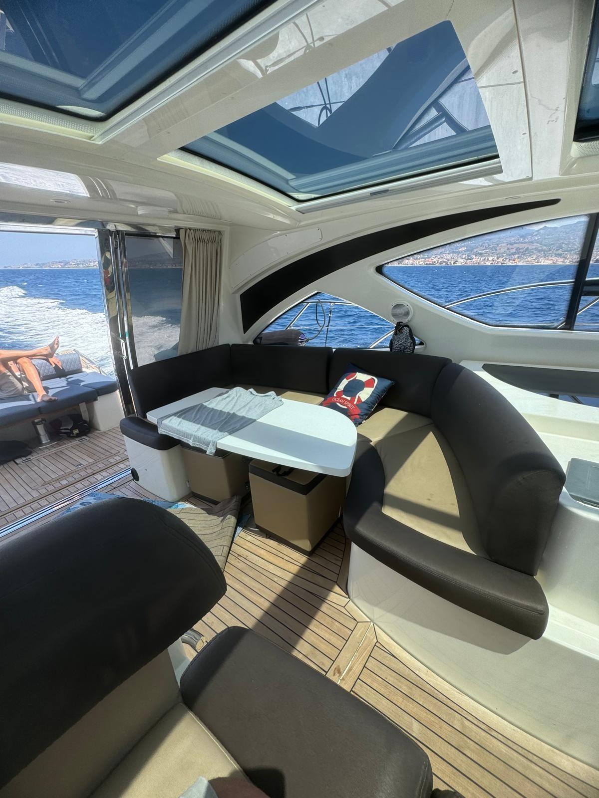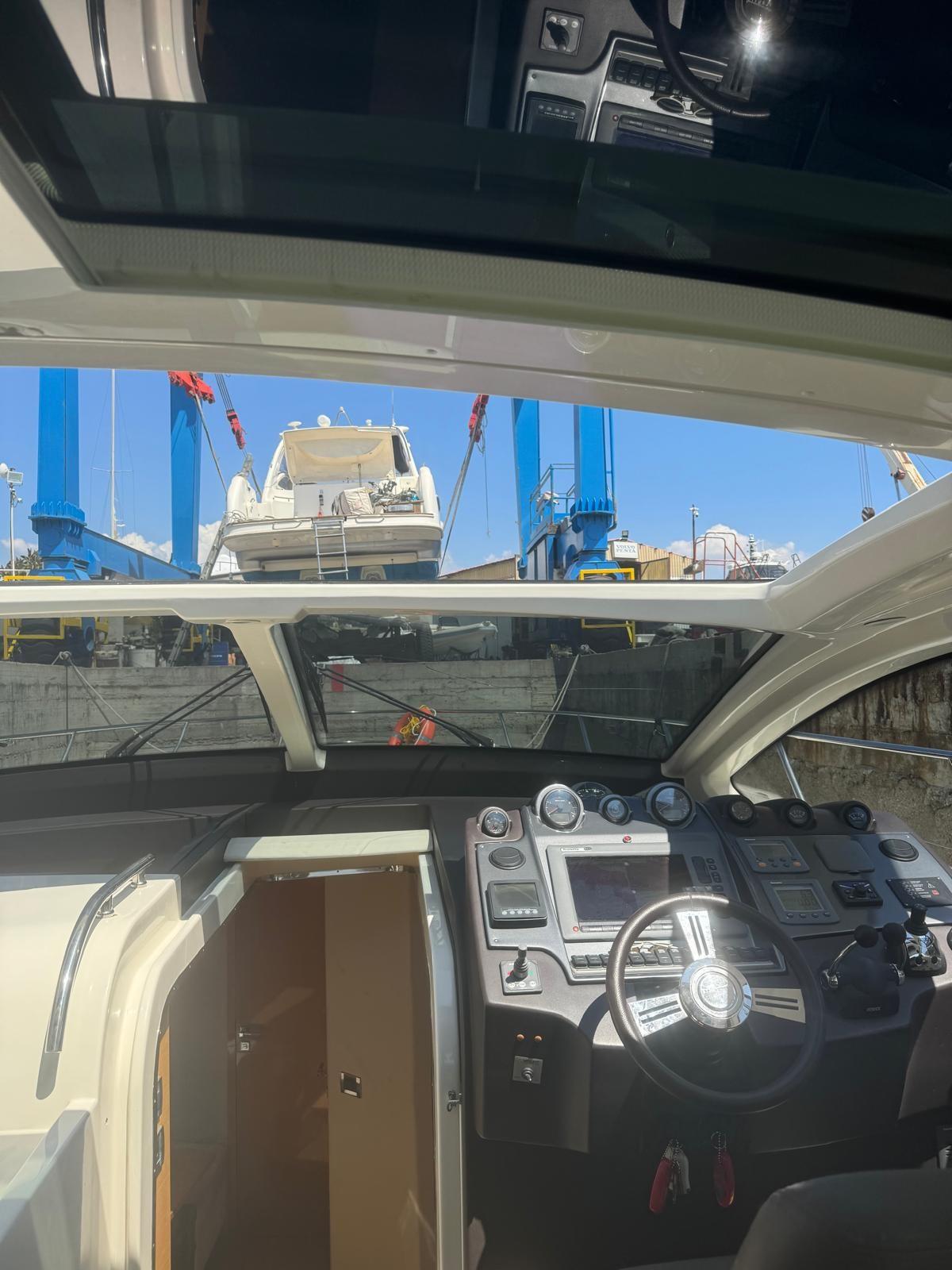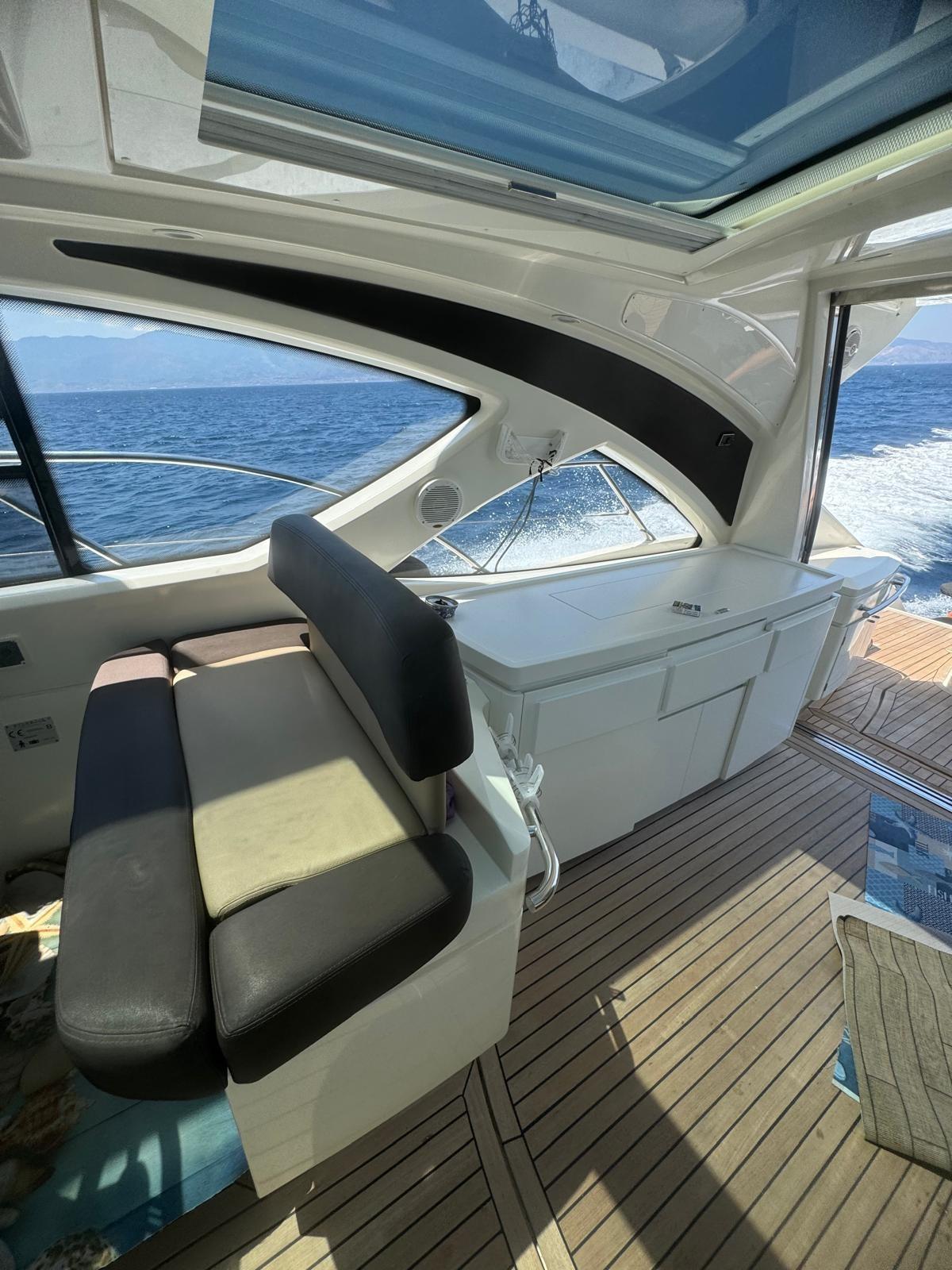 Engine Alarm, Bilge Alarm, Water pressure pump, Special Colour (WRAPPING), Deck Shower, Directional Spotlight, Electric Flaps, Hard top, Fire Extinguishing System, Flaps Indicators, Washbasin in the cockpit, Courtesy Lights, Gangway, Platform (ELETTROIDRAULICA), Automatic Bilge Pump, Manual Bilge Pump, Entry door, Teak Cockpit, Shorepower connector, Voltage Rectifier, Rollbar, Electric Windlass, swimming ladder, cockpit table, Living Room Foldable Table, guard rails with gates, Horn.