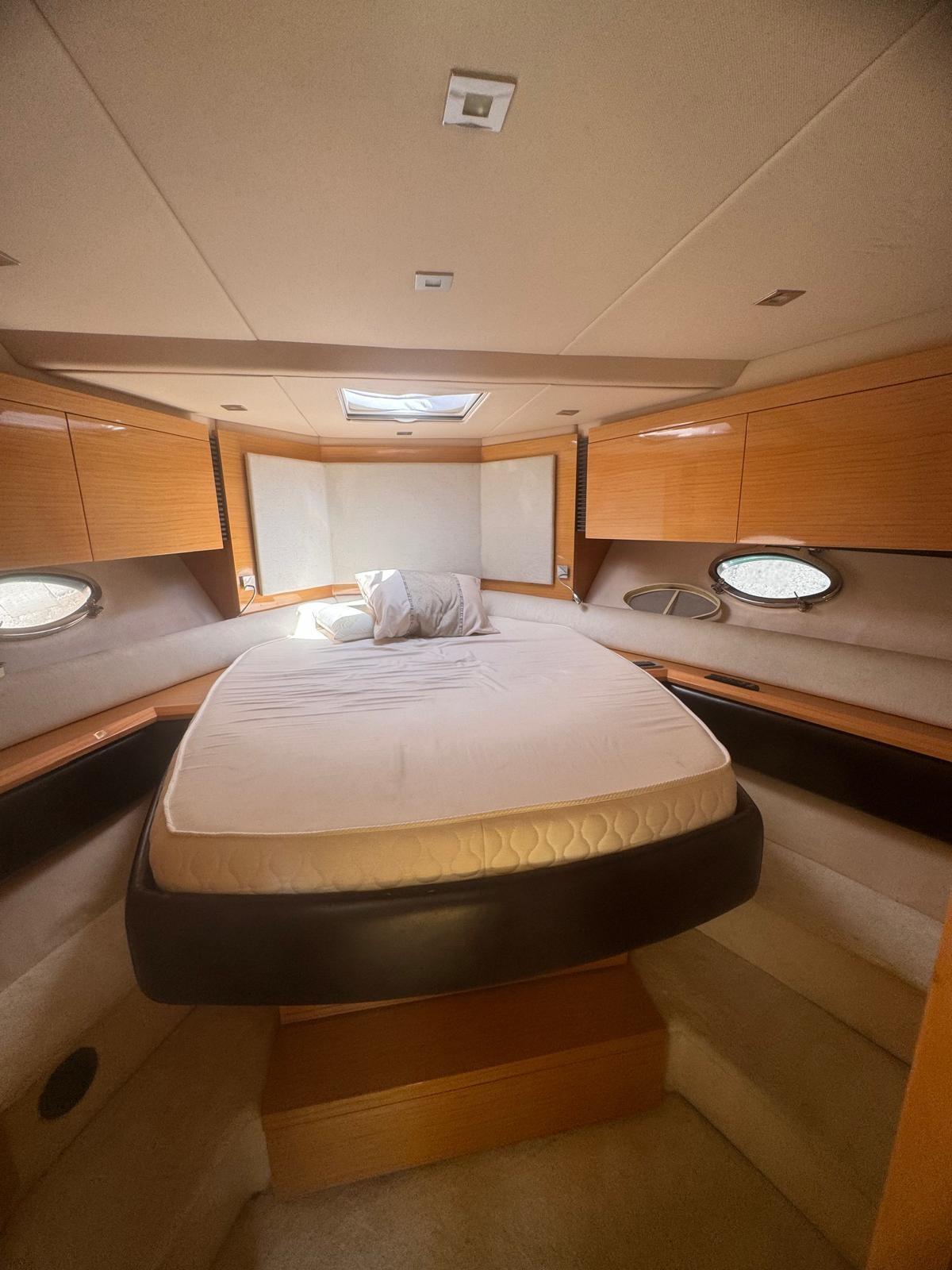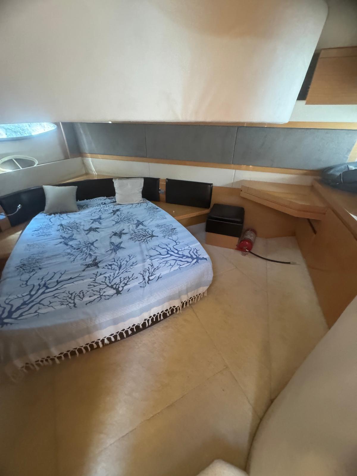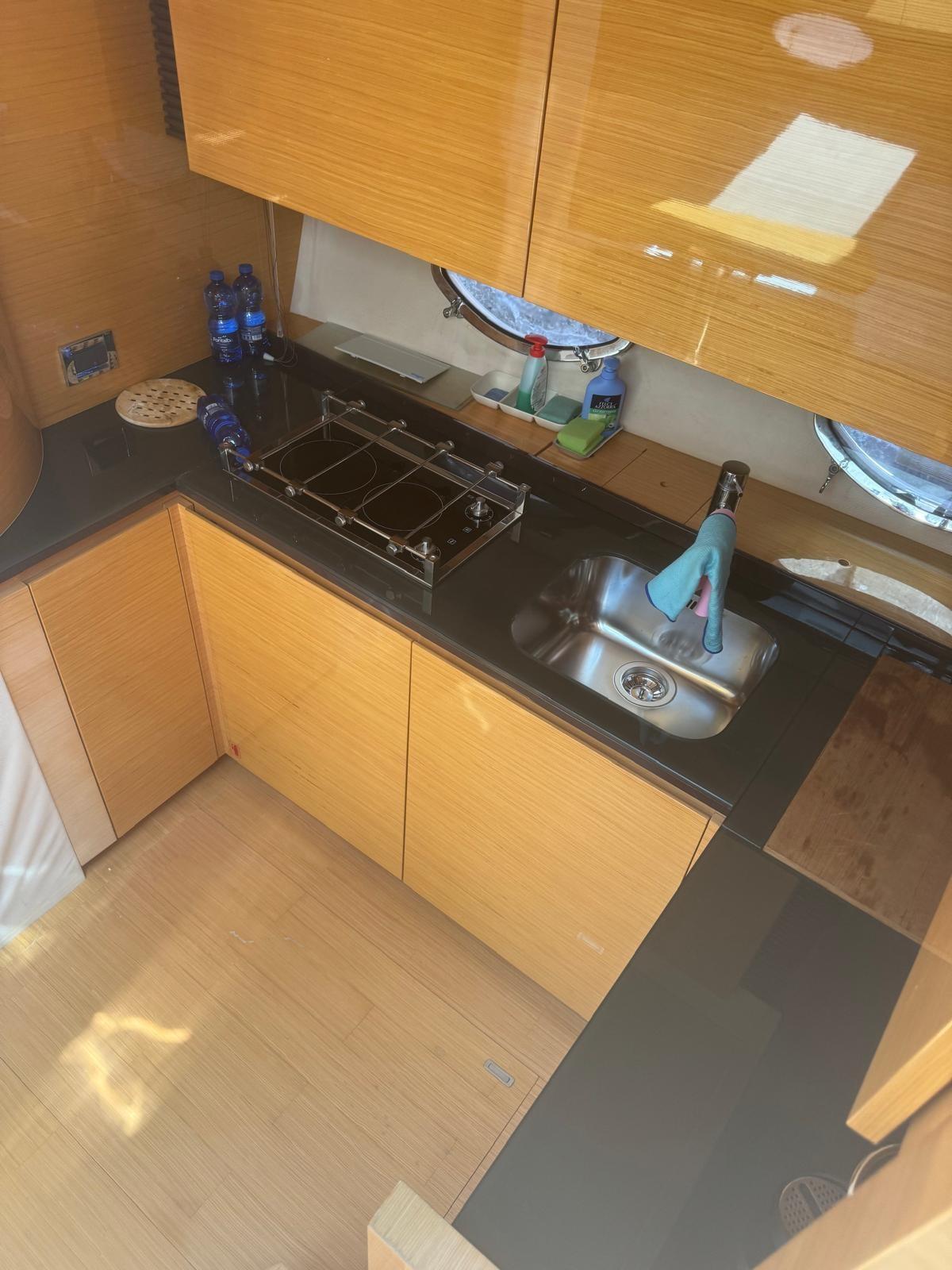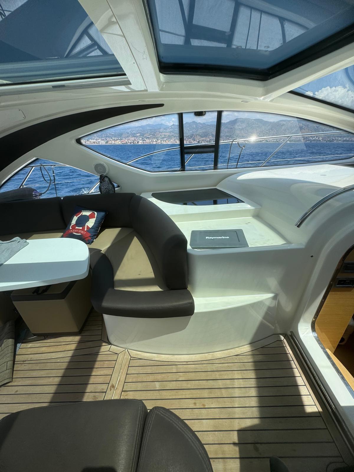 Engine Alarm, Bilge Alarm, Water pressure pump, Special Colour (WRAPPING), Deck Shower, Directional Spotlight, Electric Flaps, Hard top, Fire Extinguishing System, Flaps Indicators, Washbasin in the cockpit, Courtesy Lights, Gangway, Platform (ELETTROIDRAULICA), Automatic Bilge Pump, Manual Bilge Pump, Entry door, Teak Cockpit, Shorepower connector, Voltage Rectifier, Rollbar, Electric Windlass, swimming ladder, cockpit table, Living Room Foldable Table, guard rails with gates, Horn.