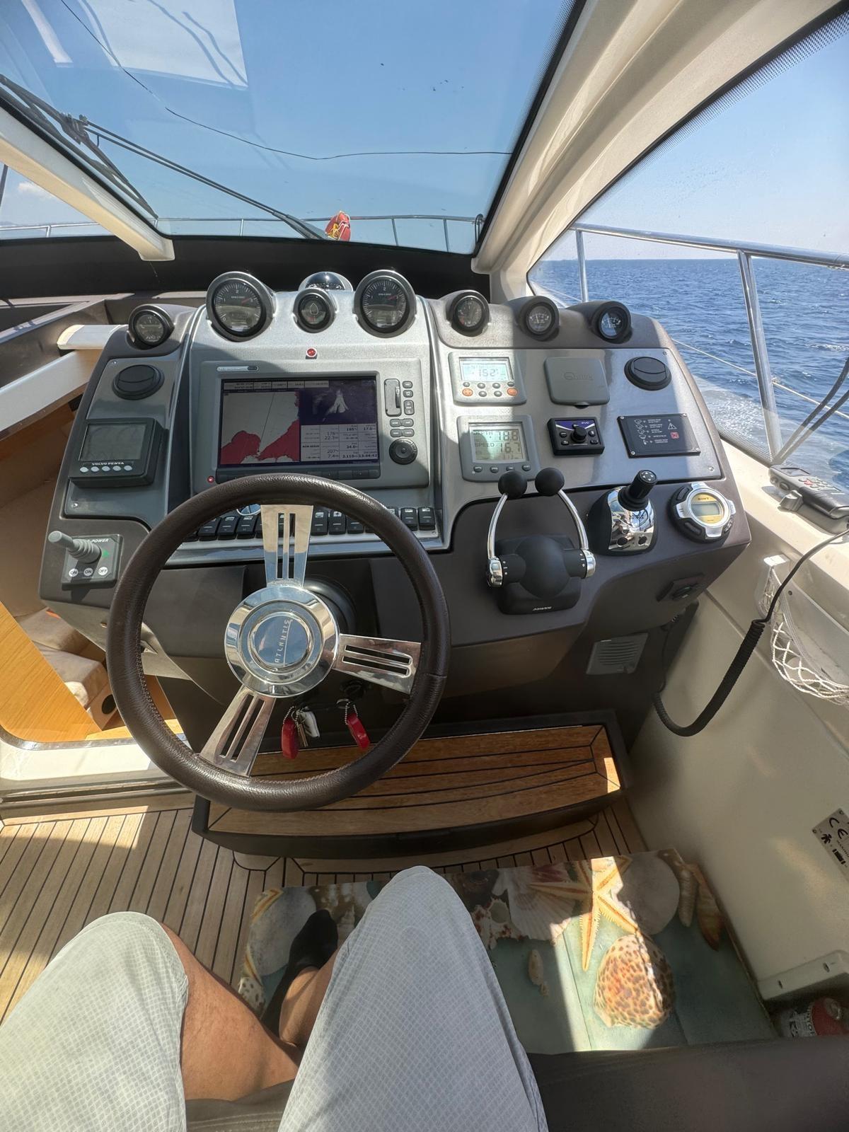 Rudder angle indicator, Radar Antenna, Electronic engine control, On-Board Computer, Chain counter, Joystick, Plotter with GPS antenna, Co-pilot seat.