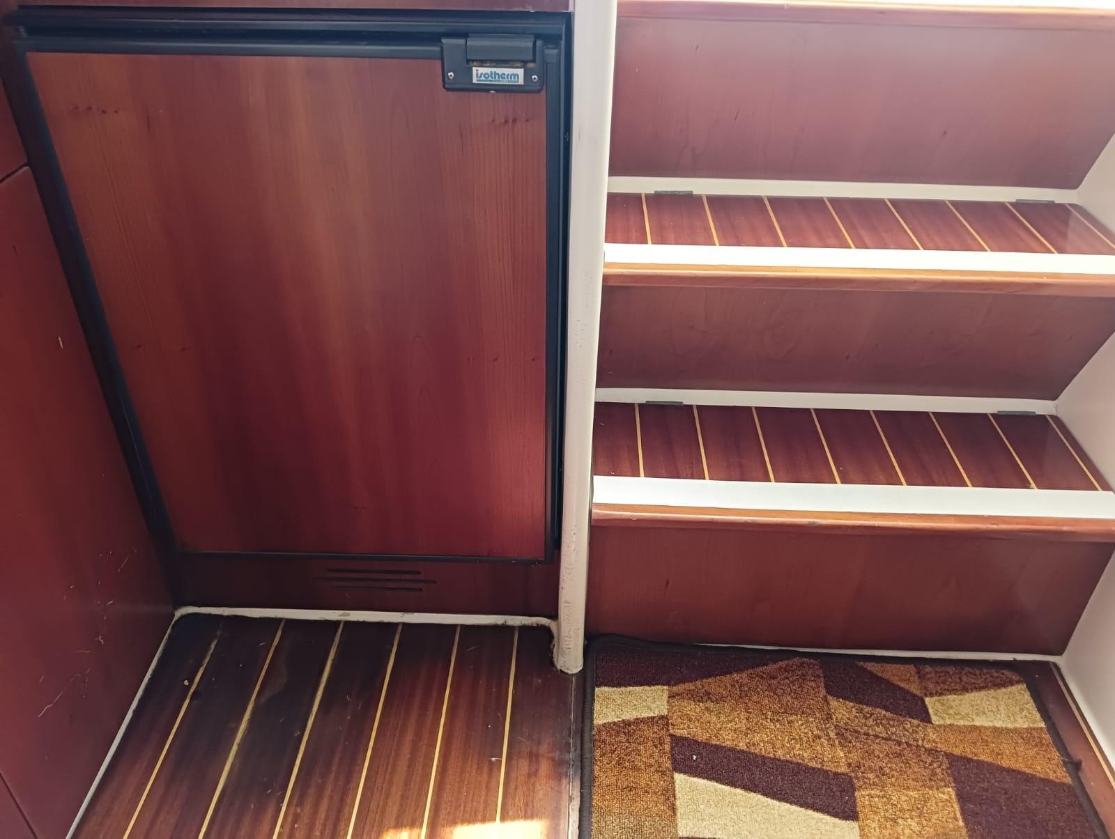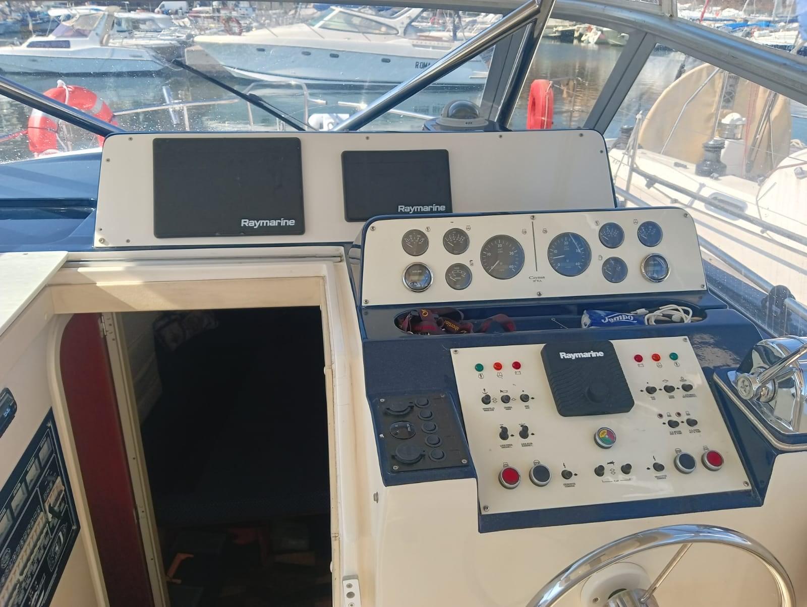 Engine Alarm, Bilge Alarm, Electric Engine Compartment Opening, Water pressure pump, Special Colour (SCAFO BLU), Deck Shower, Electric Flaps, Courtesy Lights, Platform, Automatic Bilge Pump, Manual Bilge Pump, Shorepower connector, Electric Windlass, swimming ladder, Horn, T-Top.