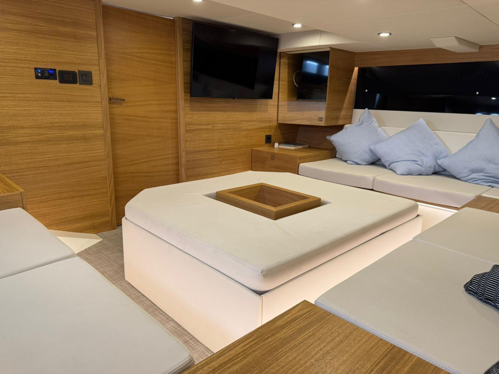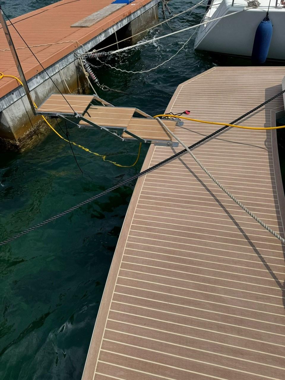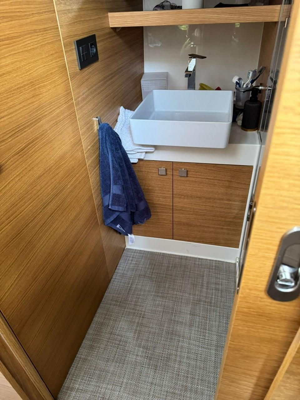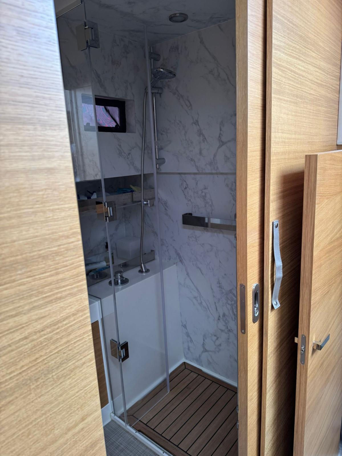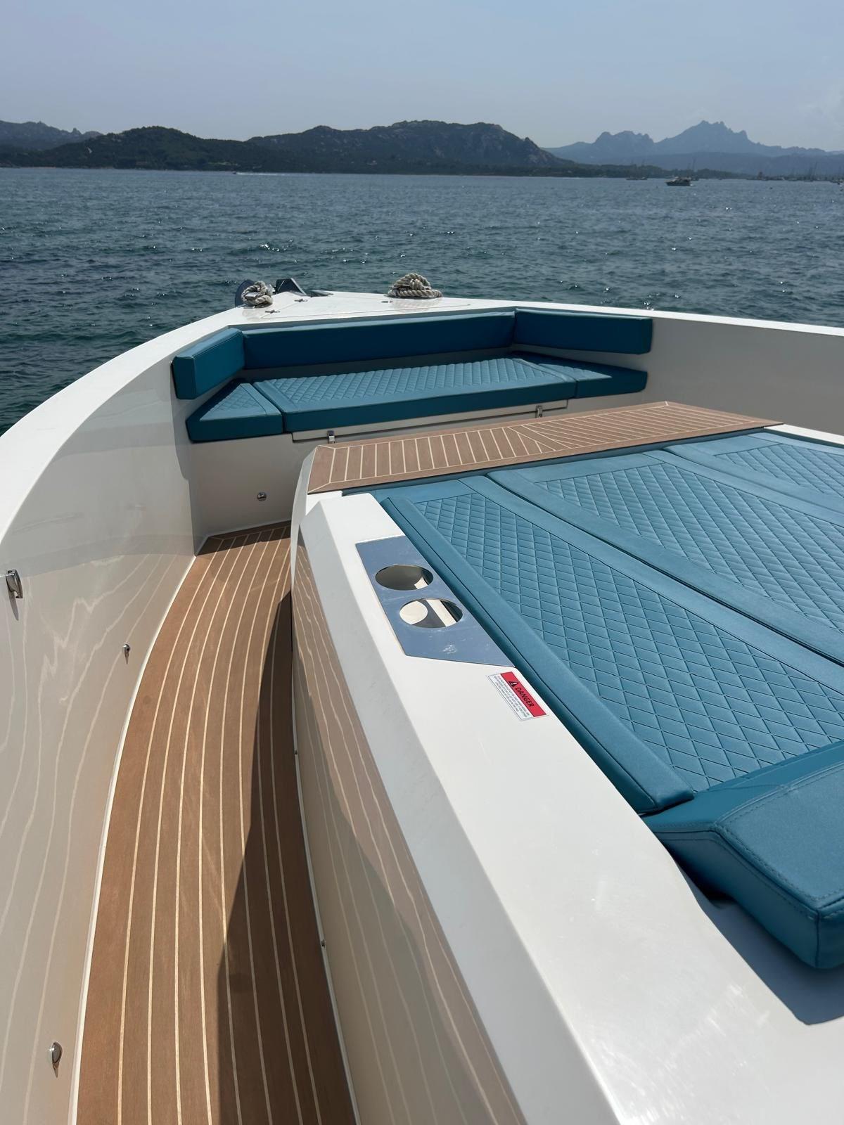Engine Alarm, Bilge Alarm, Alternator, Water pressure pump, Teak Side Decks, Shore power cable, Deck Shower, Electric Flaps, Hard top, Flaps Indicators, Washbasin in the cockpit, Courtesy Lights, Underwater lights, Gangway, Platform, Automatic Bilge Pump, Manual Bilge Pump, Teak Cockpit, Shorepower connector, Electric Windlass, swimming ladder, cockpit table, Horn.