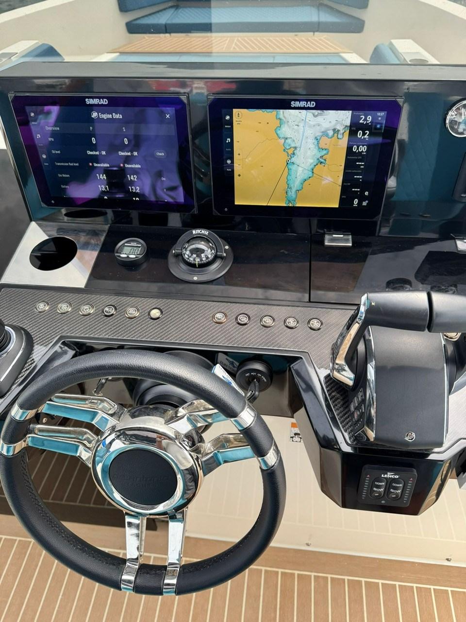 Rudder angle indicator, Electronic engine control, On-Board Computer, Chain counter, Joystick, Consumption monitor, Plotter with GPS antenna, Co-pilot seat.
