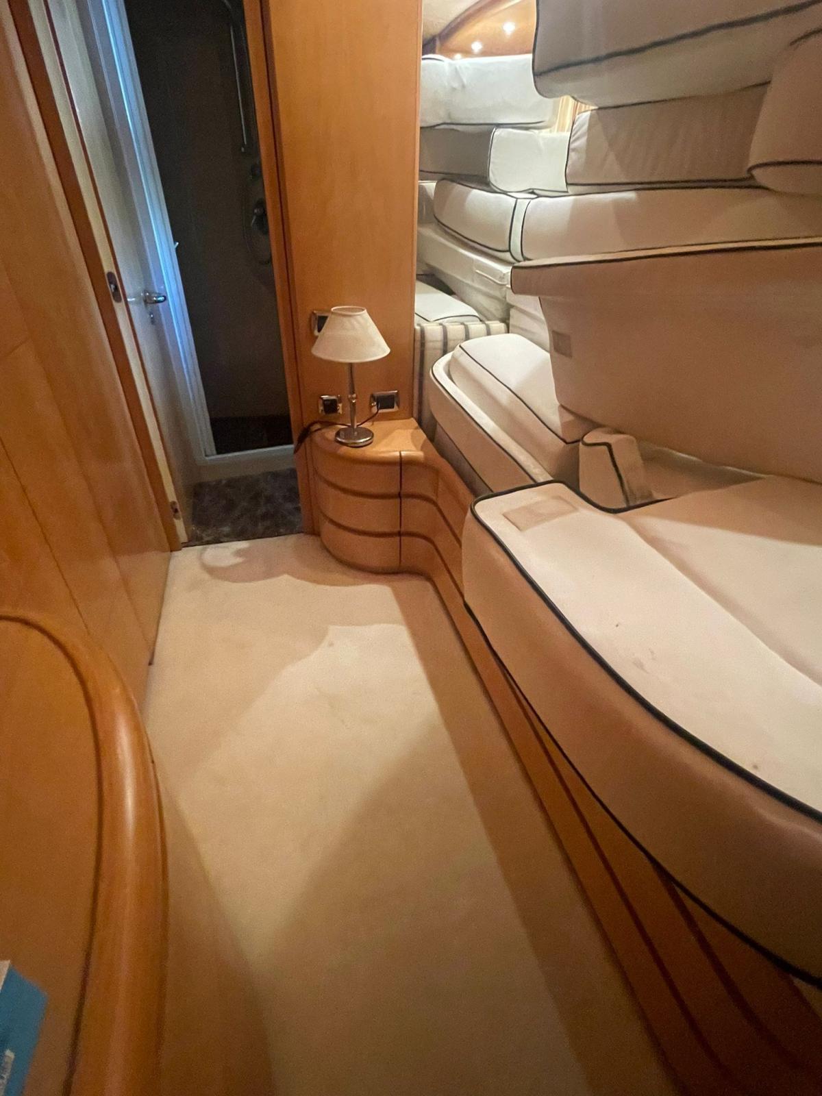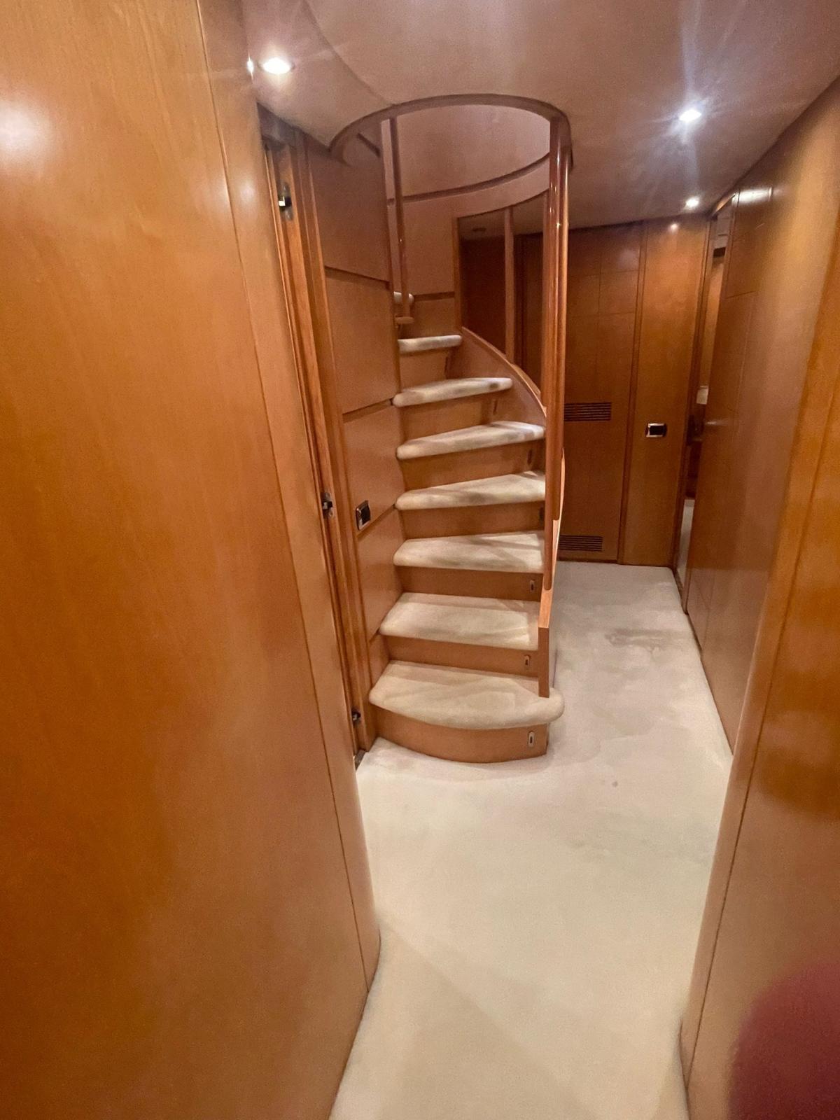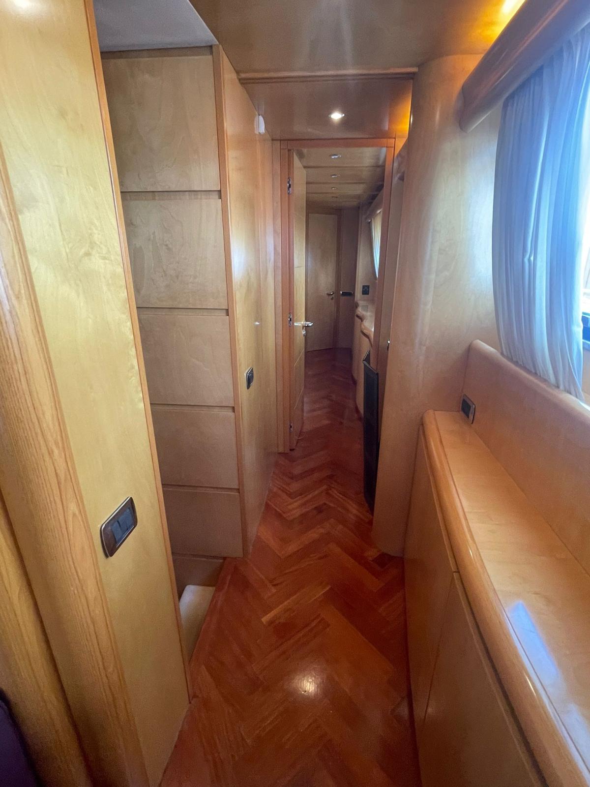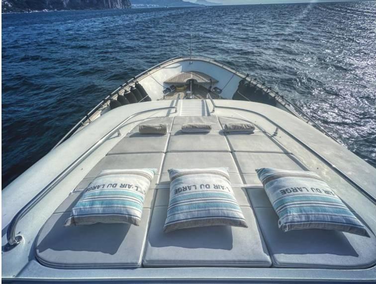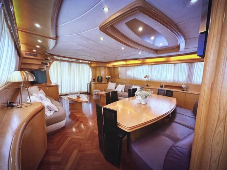 Engine Alarm, Bilge Alarm, Water pressure pump, Teak Side Decks, Deck Shower, Twin Steering, Directional Spotlight, Hydraulic Flaps, Crane, Fire Extinguishing System, Anchor Chain Washdown, Washbasin in the cockpit, Courtesy Lights, Gangway, Platform, Automatic Bilge Pump, Manual Bilge Pump, Entry door, Side door, Teak Cockpit, Shorepower connector, Voltage Rectifier, Electronic instrumentation repeater, Rollbar, Electric Windlass, swimming ladder, Saddles for tender, cockpit table, guard rails with gates, Horn.