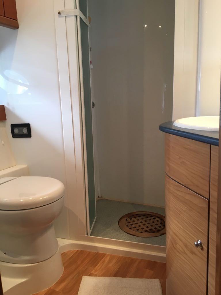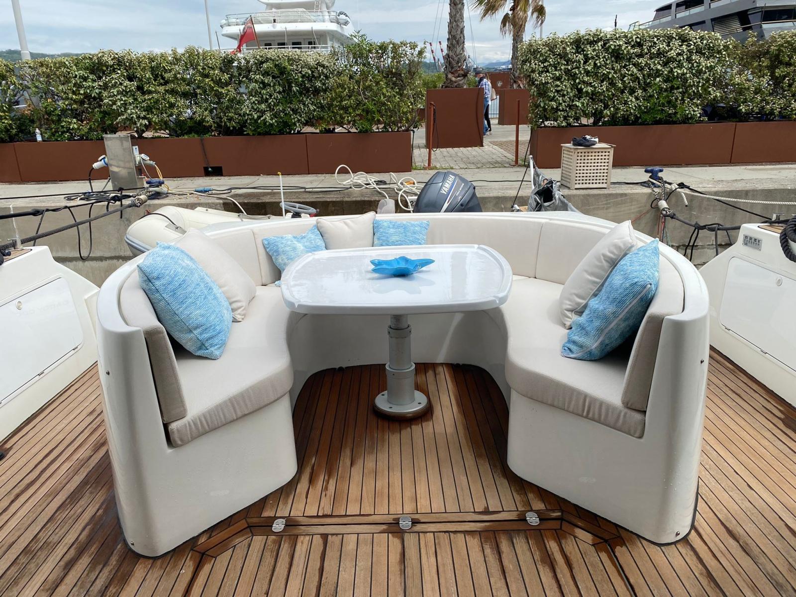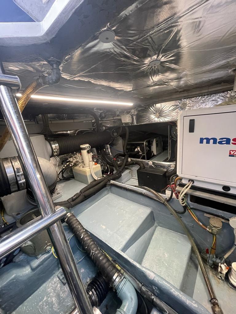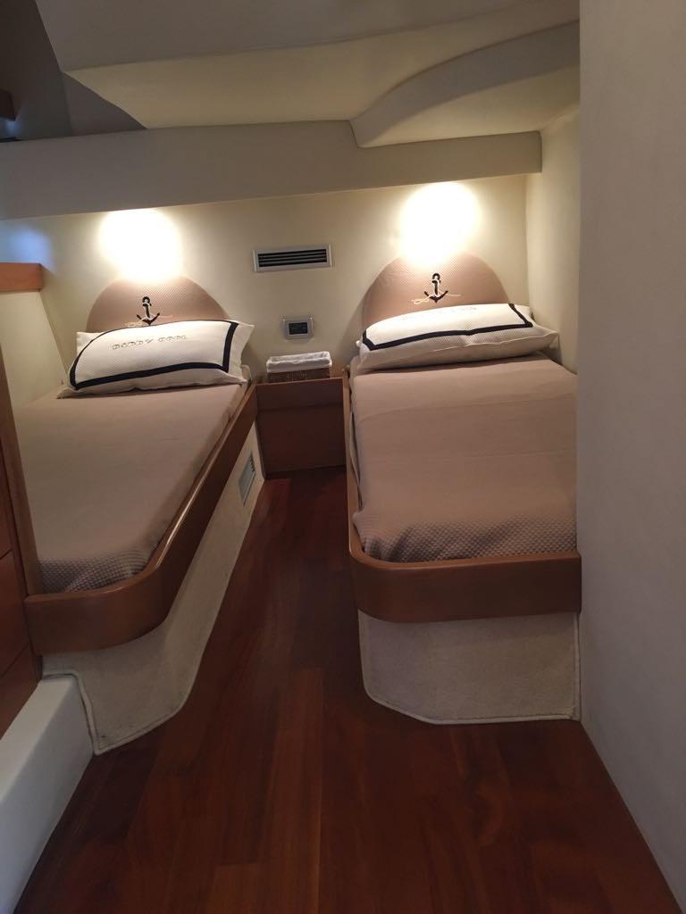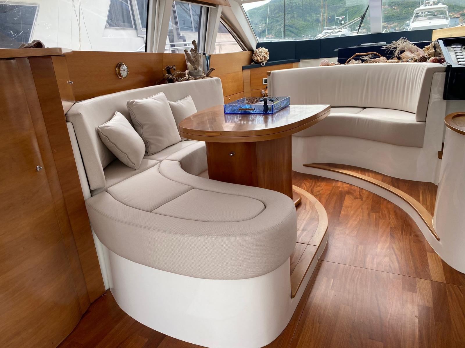 Engine Alarm, Bilge Alarm, Water pressure pump, Special Colour (CARTA ZUCCHERO), Deck Shower, Hydraulic Flaps, Hard top, Fire Extinguishing System, Courtesy Lights, Gangway (IDRAULICA A SCOMPARSA), Platform (IDRAULICA AFFONDABILE), Automatic Bilge Pump, Manual Bilge Pump, Entry door, Teak Cockpit, Shorepower connector, Voltage Rectifier, Rollbar, Electric Windlass, swimming ladder, Saddles for tender, cockpit table (ELETTRICO), Tender, guard rails with gates, Horn, Stern Winches.