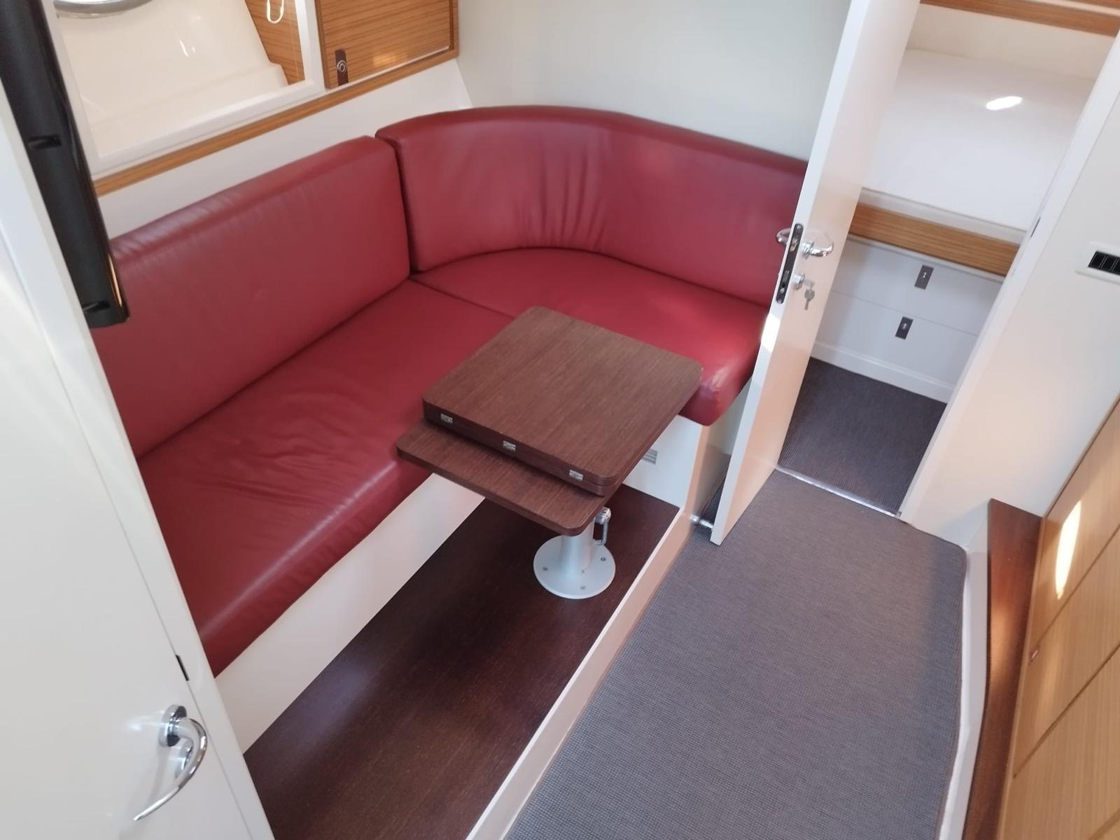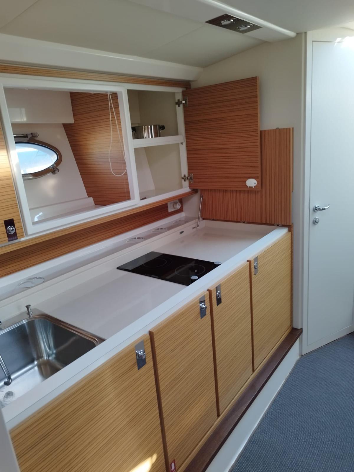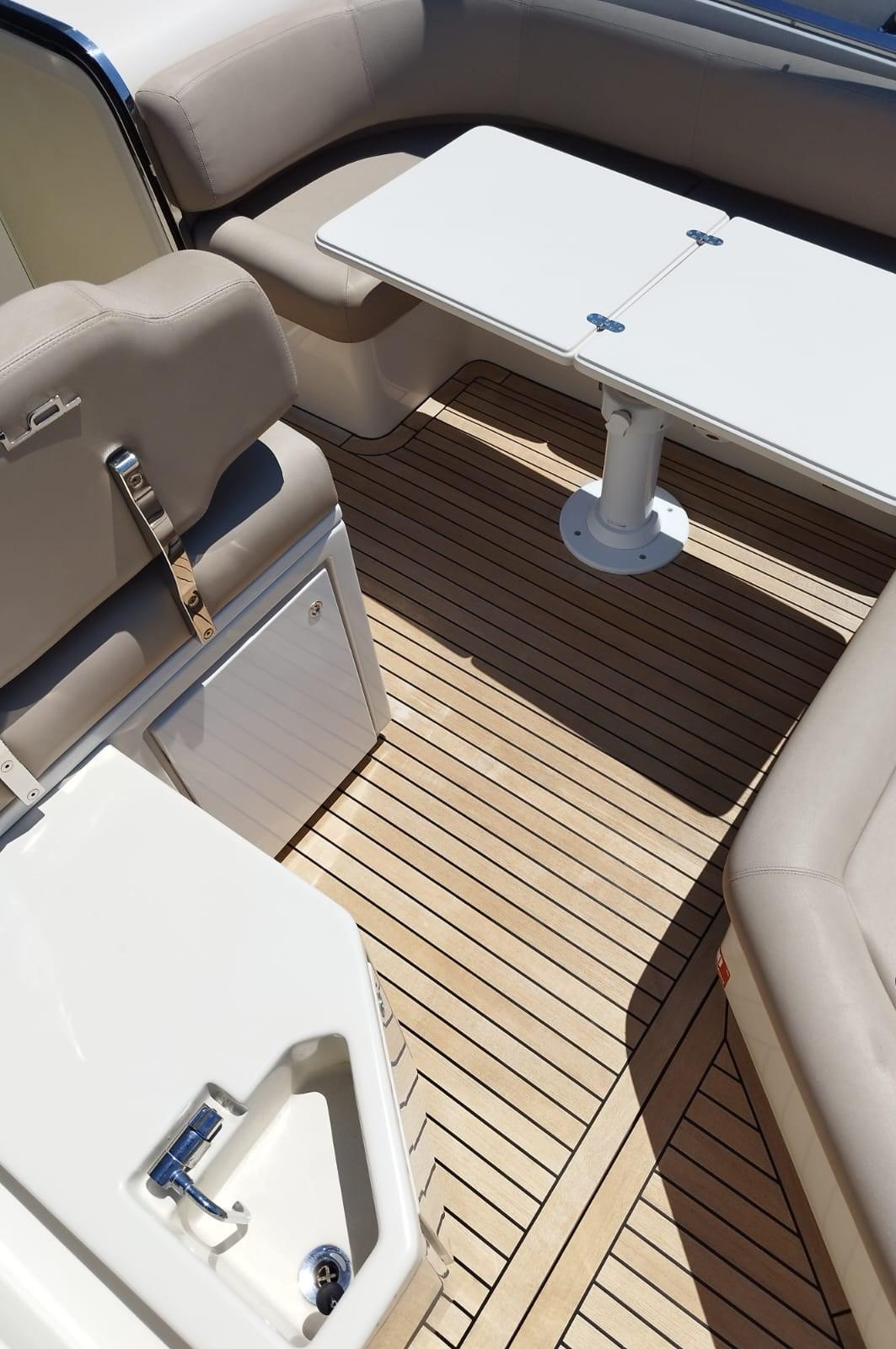 Engine Alarm, Bilge Alarm, Water pressure pump, Deck Shower, Electric Flaps, Fire Extinguishing System, Washbasin in the cockpit, Courtesy Lights, Gangway, Platform, Automatic Bilge Pump, Manual Bilge Pump, Entry door, Teak Cockpit, Shorepower connector, Electric Windlass, swimming ladder, cockpit table, Living Room Foldable Table, Horn.