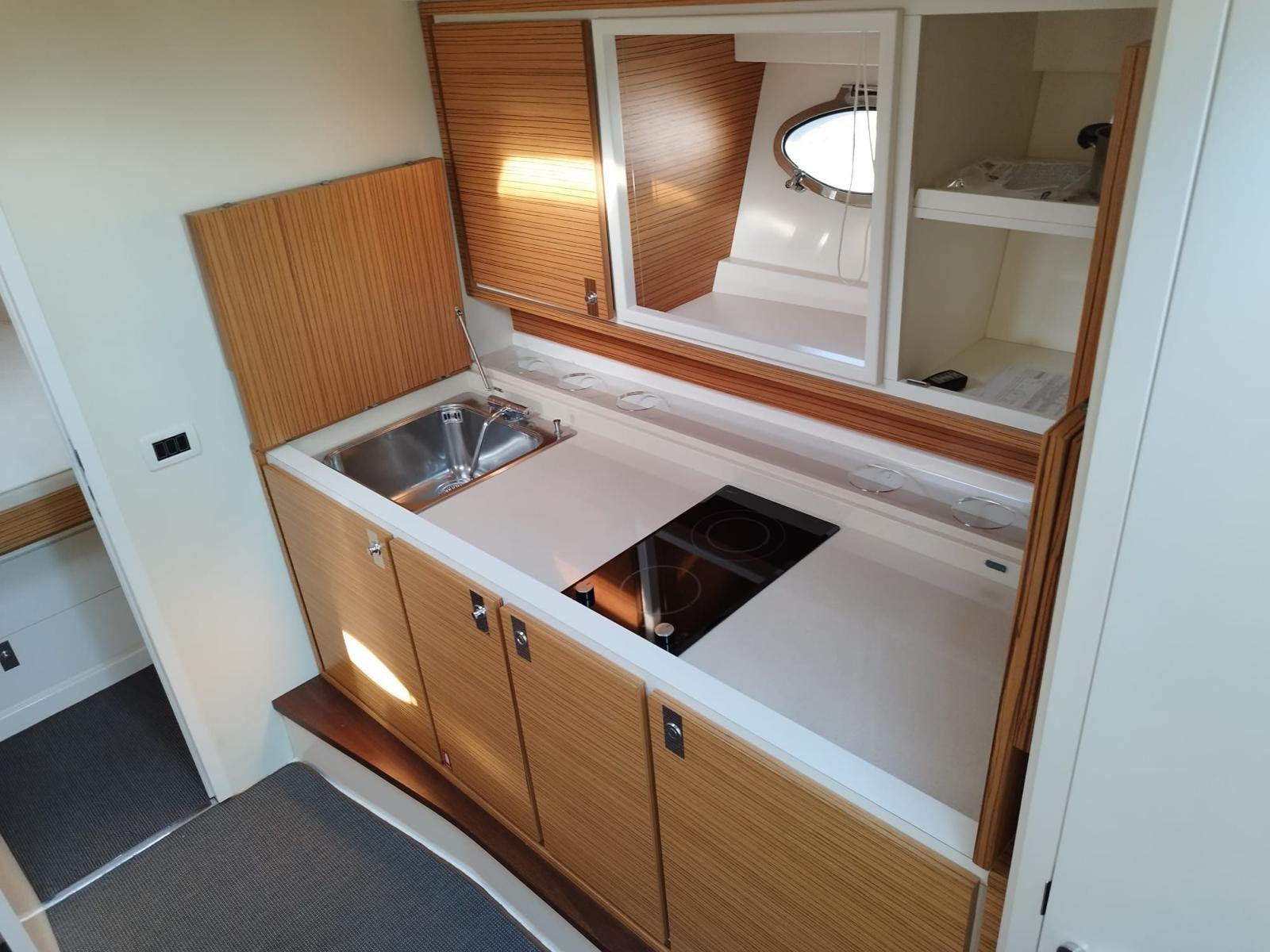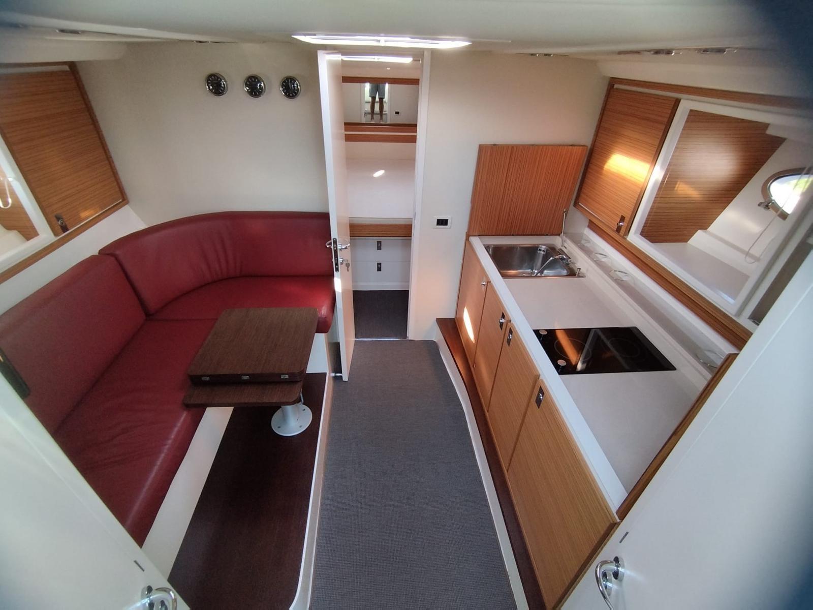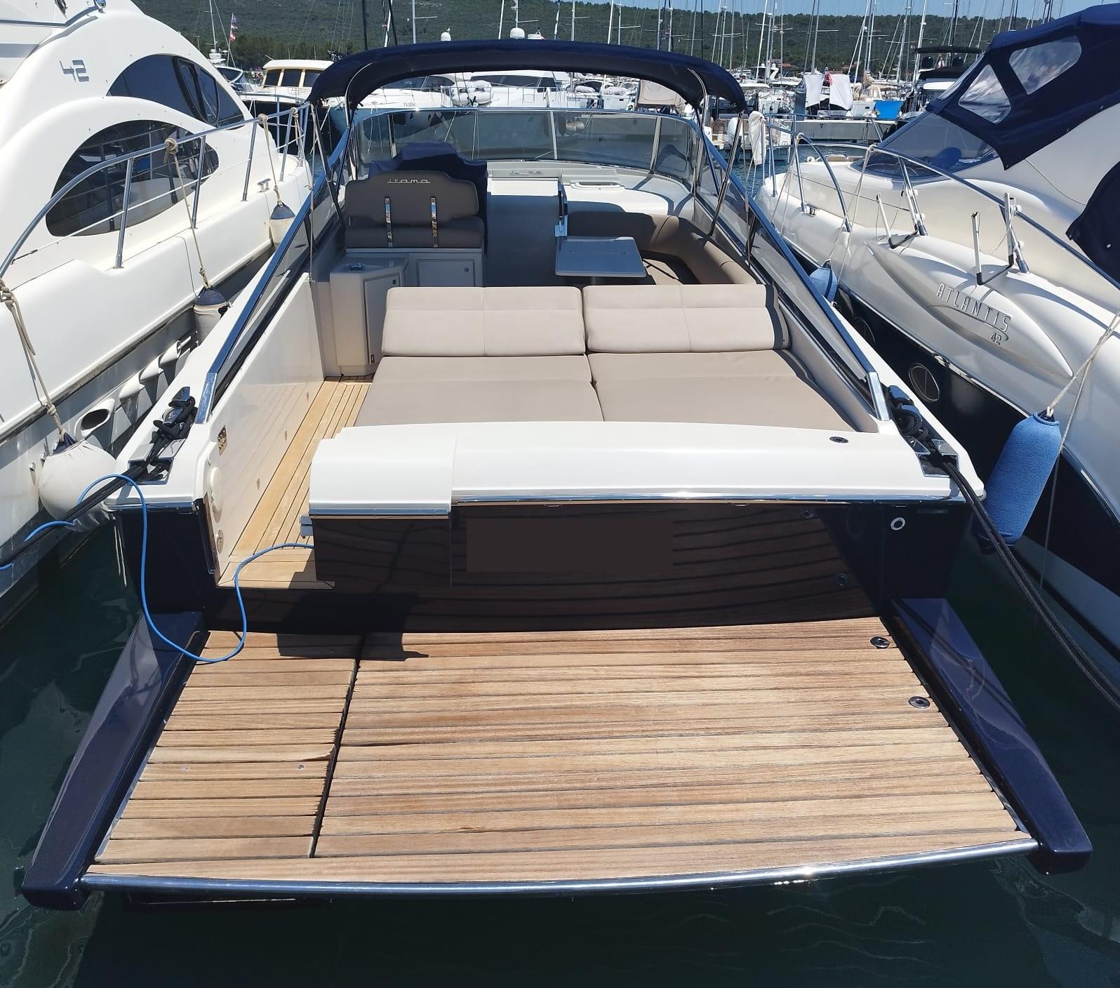 Engine Alarm, Bilge Alarm, Water pressure pump, Deck Shower, Electric Flaps, Fire Extinguishing System, Washbasin in the cockpit, Courtesy Lights, Gangway, Platform, Automatic Bilge Pump, Manual Bilge Pump, Entry door, Teak Cockpit, Shorepower connector, Electric Windlass, swimming ladder, cockpit table, Living Room Foldable Table, Horn.