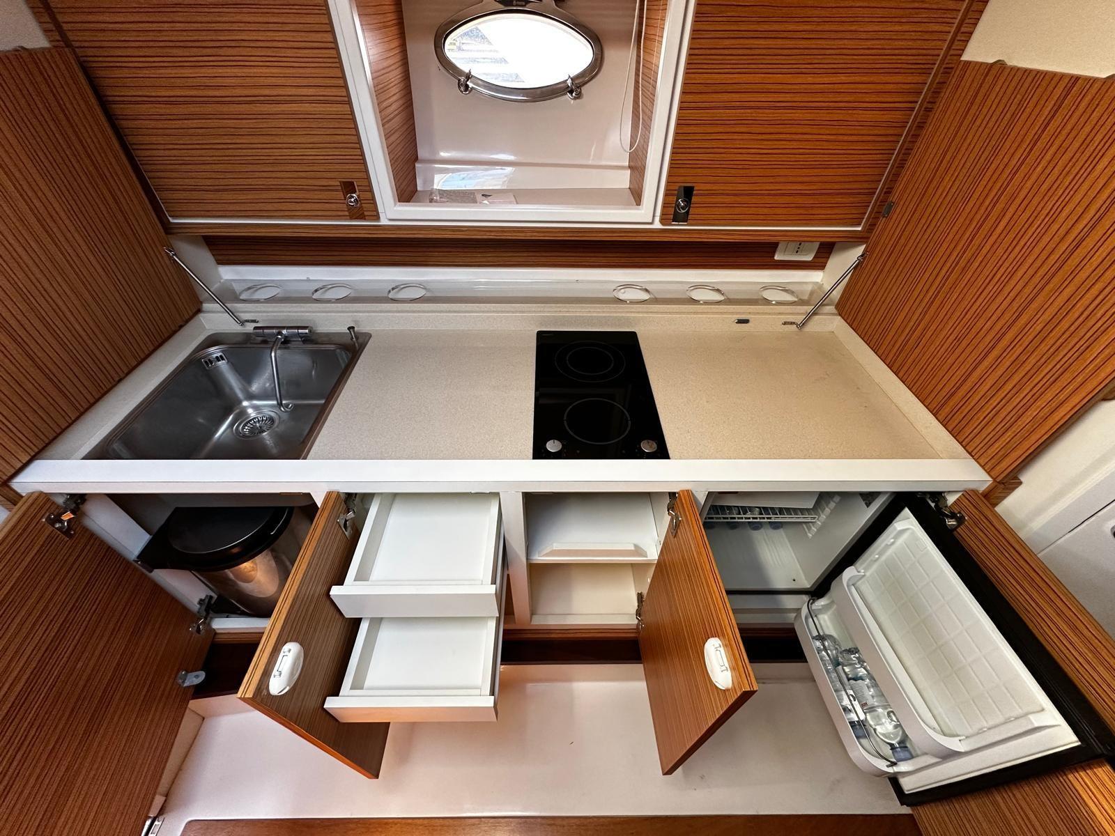 Galley, Deck Refrigerator, Electric hot plate.
