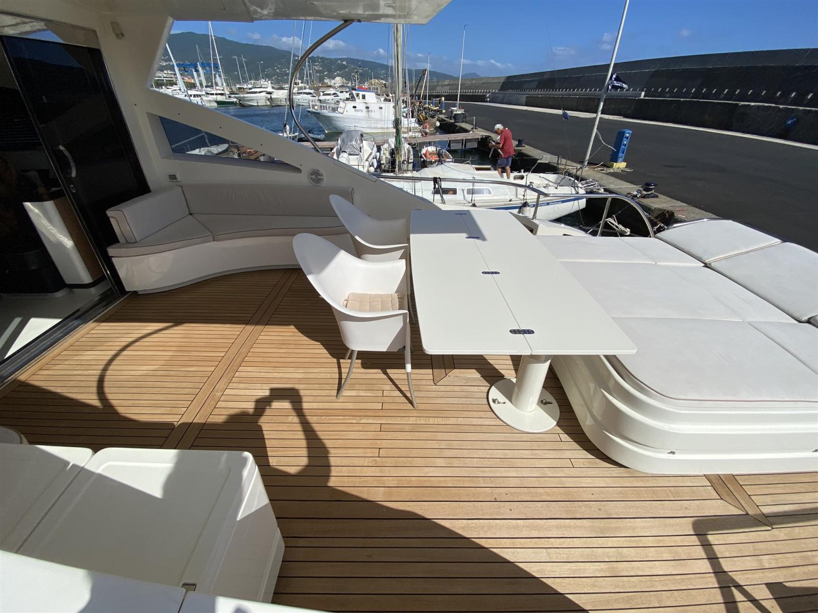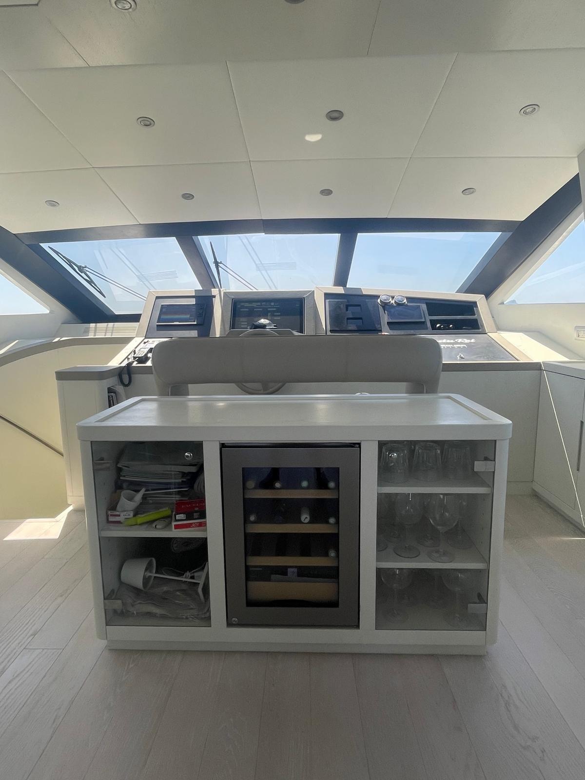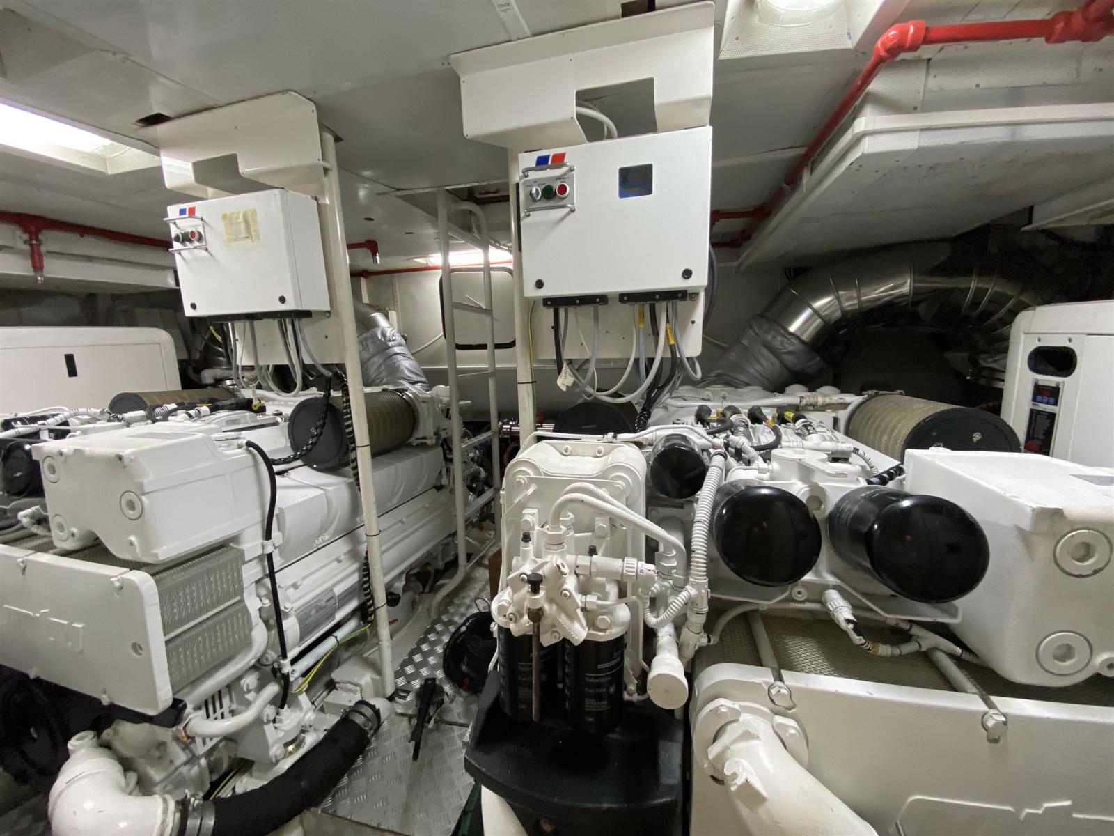 Engine Alarm, Bilge Alarm, Water pressure pump, Teak Side Decks, Deck Shower, Directional Spotlight, Hydraulic Flaps, Tender Garage, Hard top, Fire Extinguishing System, Flaps Indicators, Anchor Chain Washdown, Courtesy Lights, Underwater lights, Gangway, Platform, Automatic Bilge Pump, Manual Bilge Pump, Entry door, Side door, Teak Cockpit, Shorepower connector, Water harbor connector system, Rollbar, Electric Windlass, swimming ladder, cockpit table, guard rails with gates, Horn, 2 Stern Winches.