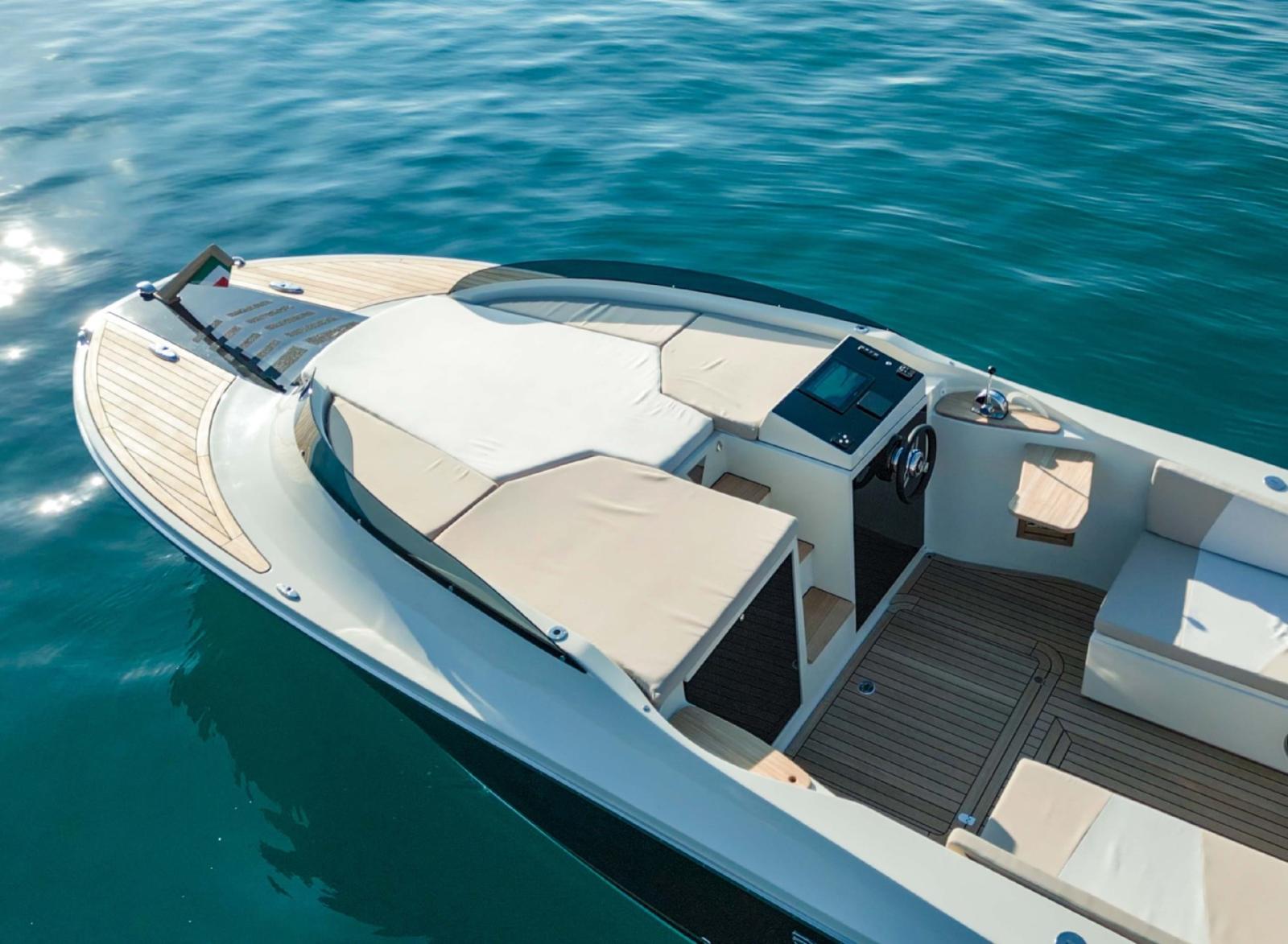 - COCKPIT, DECKHOUSE, SWIM PLATFORM, DASHBOARD, SINK COVER AND CONTROL BOX BASE FINISHED IN TEAK