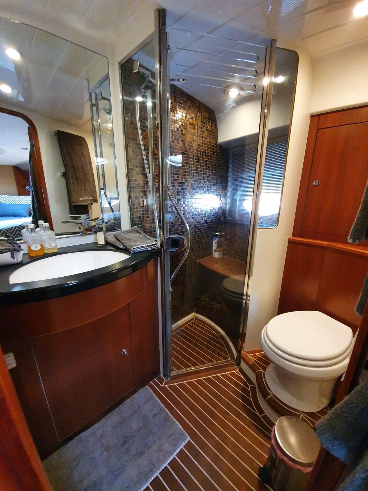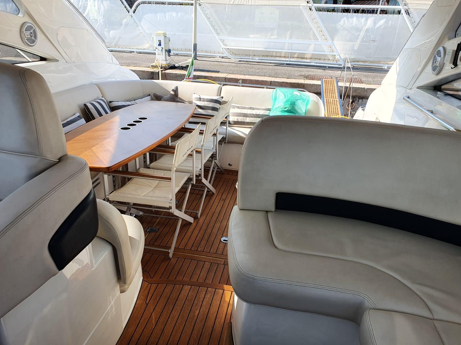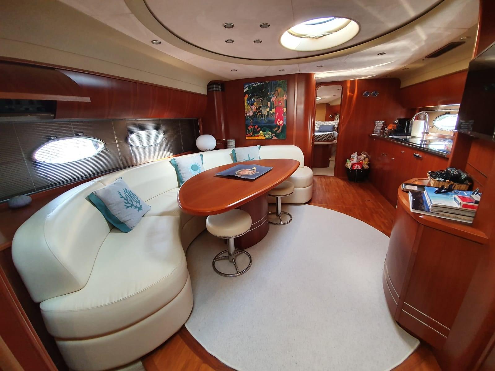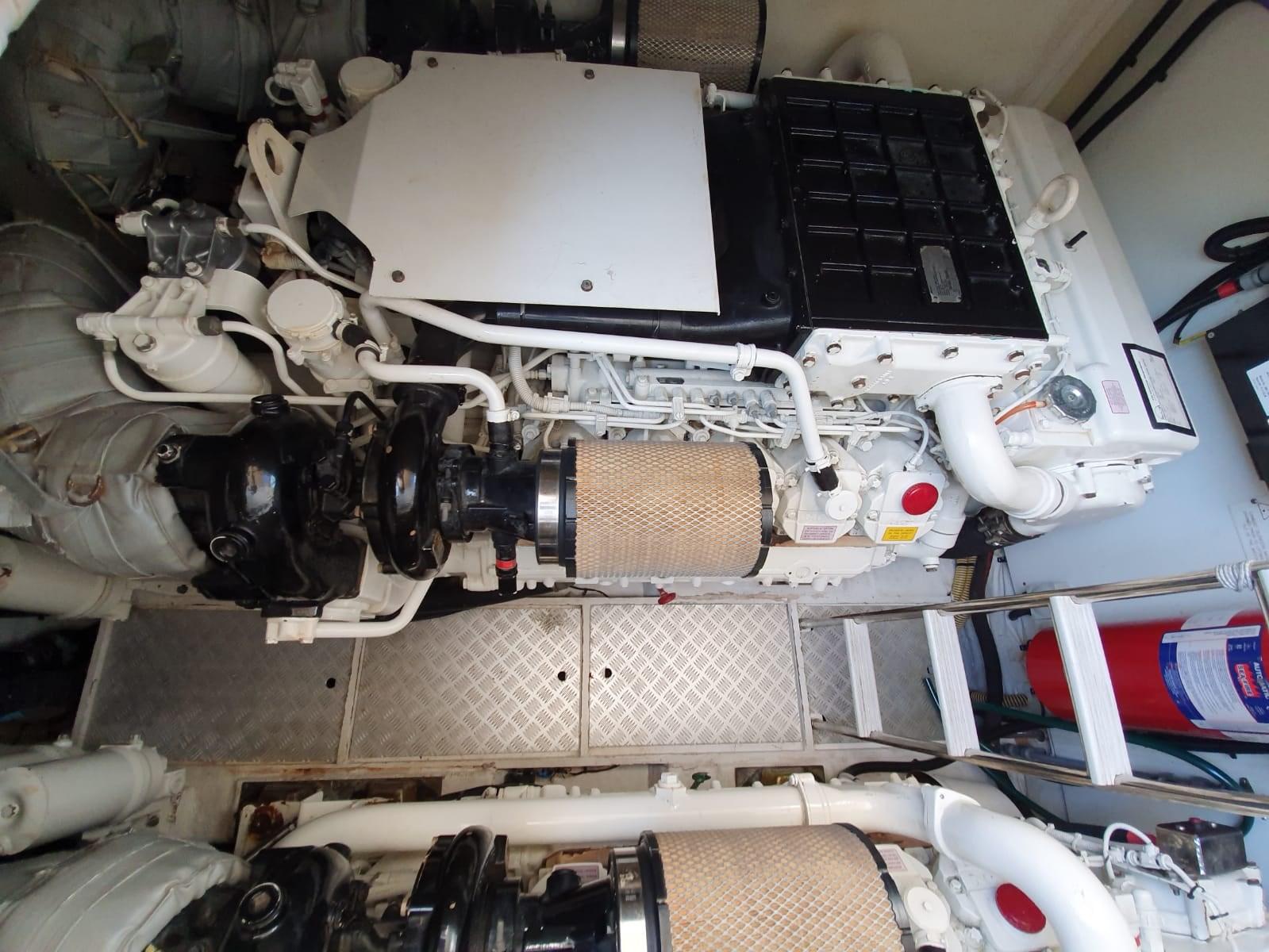 Engine Alarm, Bilge Alarm, Alternator, Water pressure pump, Shore power cable, Special Colour (SCAFO BLU), Guard rail, Directional Spotlight, Hydraulic Flaps, Tender Garage, Hard top, Fire Extinguishing System, Flaps Indicators, Washbasin in the cockpit, Courtesy Lights (LED), Gangway, Platform, Automatic Bilge Pump, Manual Bilge Pump, Teak deck, Teak Cockpit, Shorepower connector, Electric Windlass, swimming ladder, cockpit table, Horn.