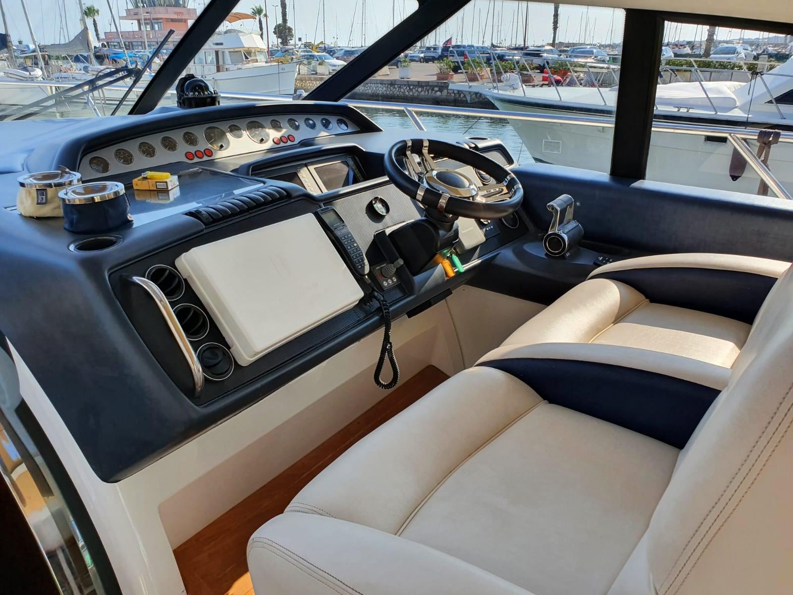 Rudder angle indicator, Radar Antenna, Electronic engine control, On-Board Computer, Plotter with GPS antenna, Co-pilot seat.
