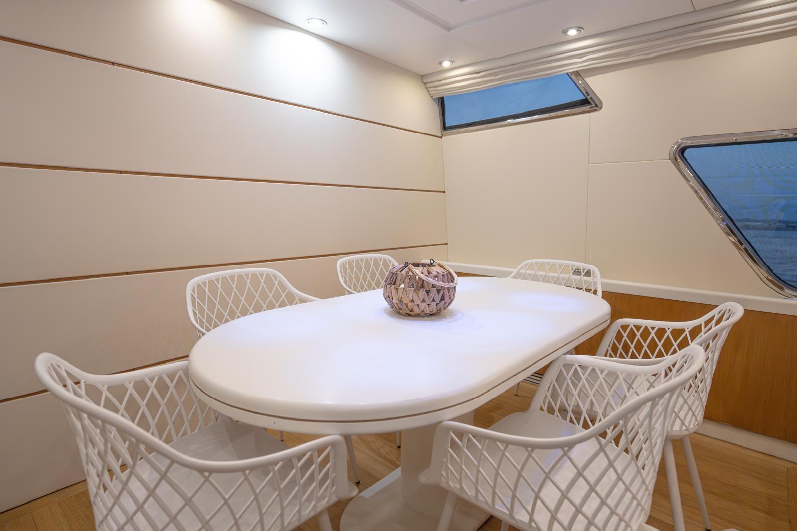 BBQ/Grill, Warm Water System, Inverter Air Conditioning, Internet Connection, Watermaker, Waste Water Plant, 12V Outlets, 220V Outlets, Black Water Tank, Video camera, Internal Phone, Electric Toilet.