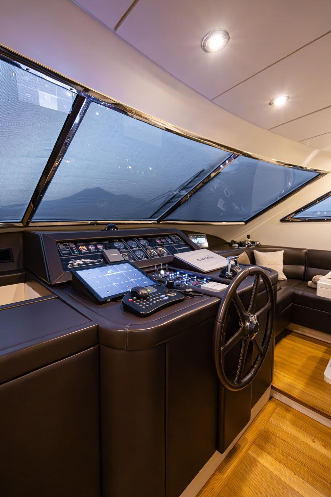 Rudder angle indicator, Radar Antenna, Electronic engine control, DSC vhf, Intercom, Plotter with GPS antenna.