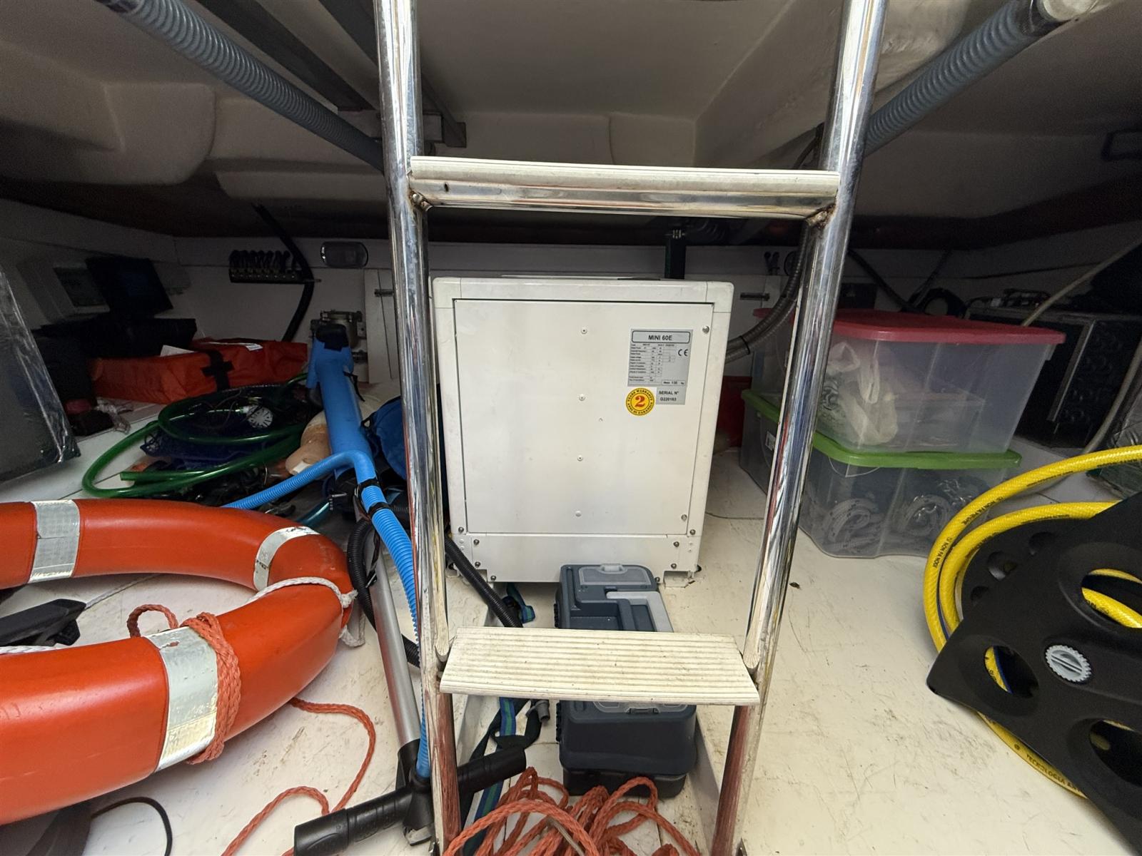 Rudder angle indicator, Radar Antenna, Electronic engine control, Plotter with GPS antenna, Control panel, Co-pilot seat.