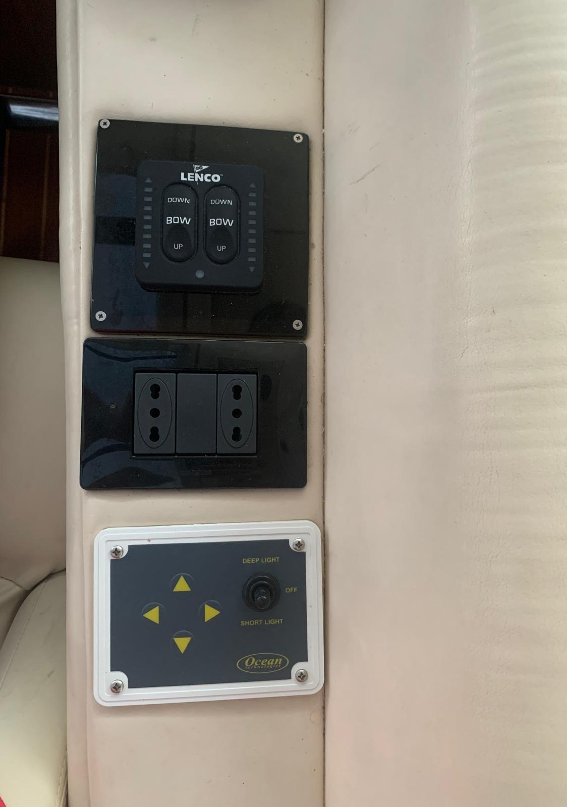 Engine Alarm, Bilge Alarm, Water pressure pump, Deck Shower, Directional Spotlight, Electric Flaps, Courtesy Lights, Gangway, Platform, Automatic Bilge Pump, Manual Bilge Pump, Teak Cockpit, Shorepower connector, Electric Windlass, swimming ladder, guard rails with gates, Horn.