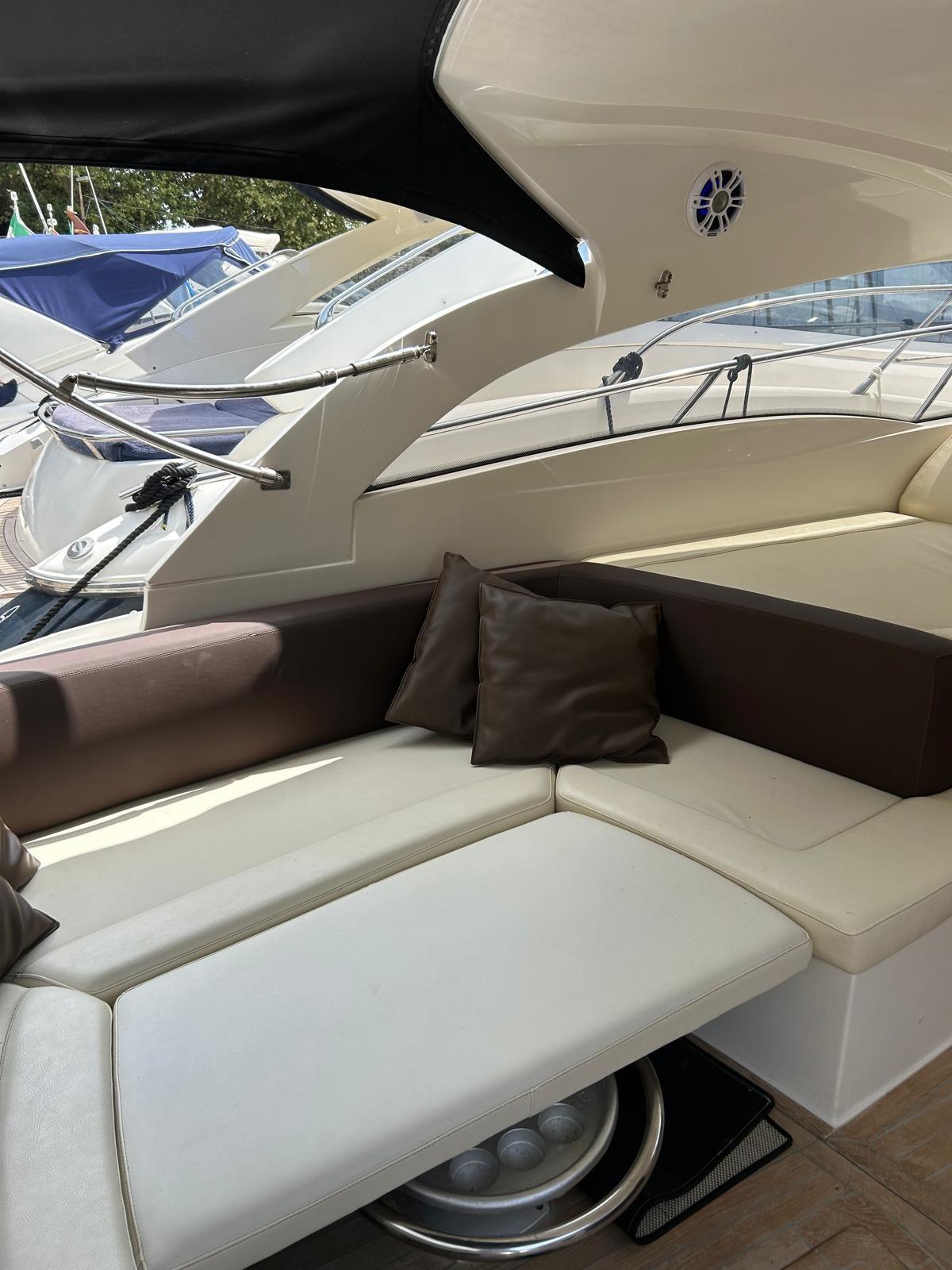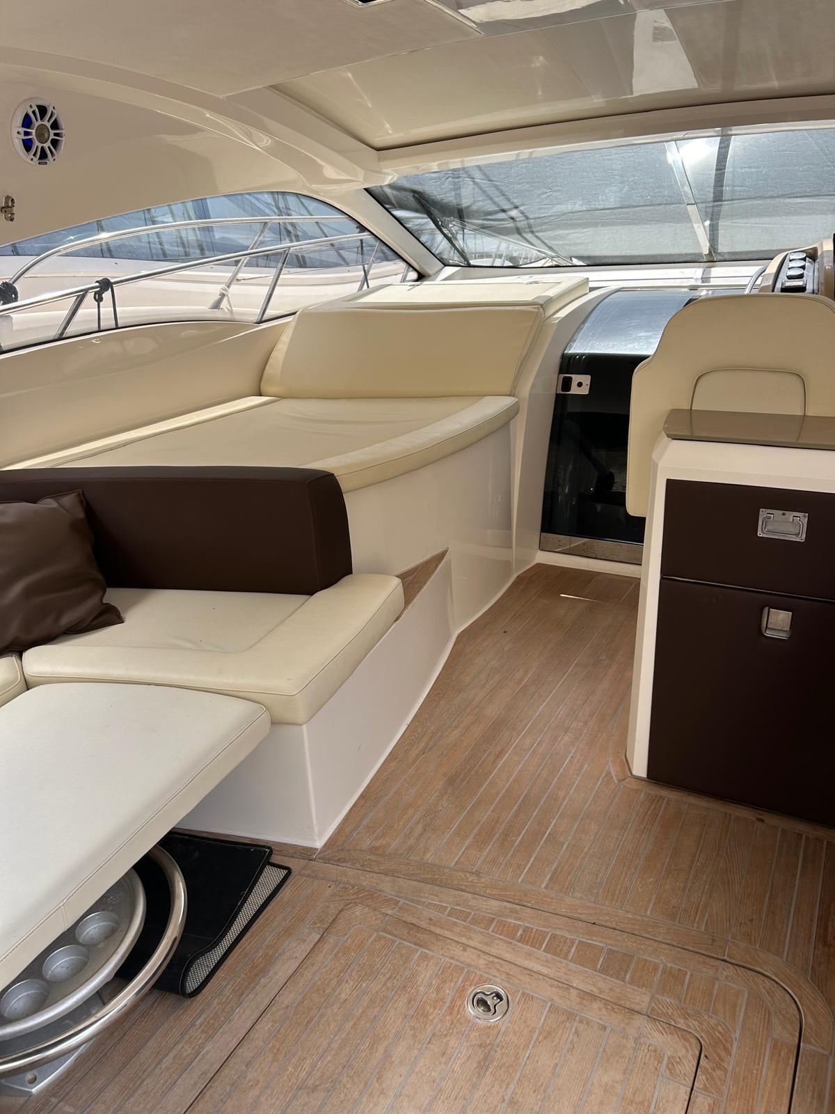 Engine Alarm, Bilge Alarm, Alternator, Water pressure pump, Deck Shower, Directional Spotlight, Electric Flaps, Hard top, Fire Extinguishing System, Washbasin in the cockpit, Courtesy Lights, Platform, Automatic Bilge Pump, Manual Bilge Pump, Teak Cockpit, Shorepower connector, Electric Windlass, swimming ladder, cockpit table, Living Room Foldable Table, guard rails with gates, Horn.