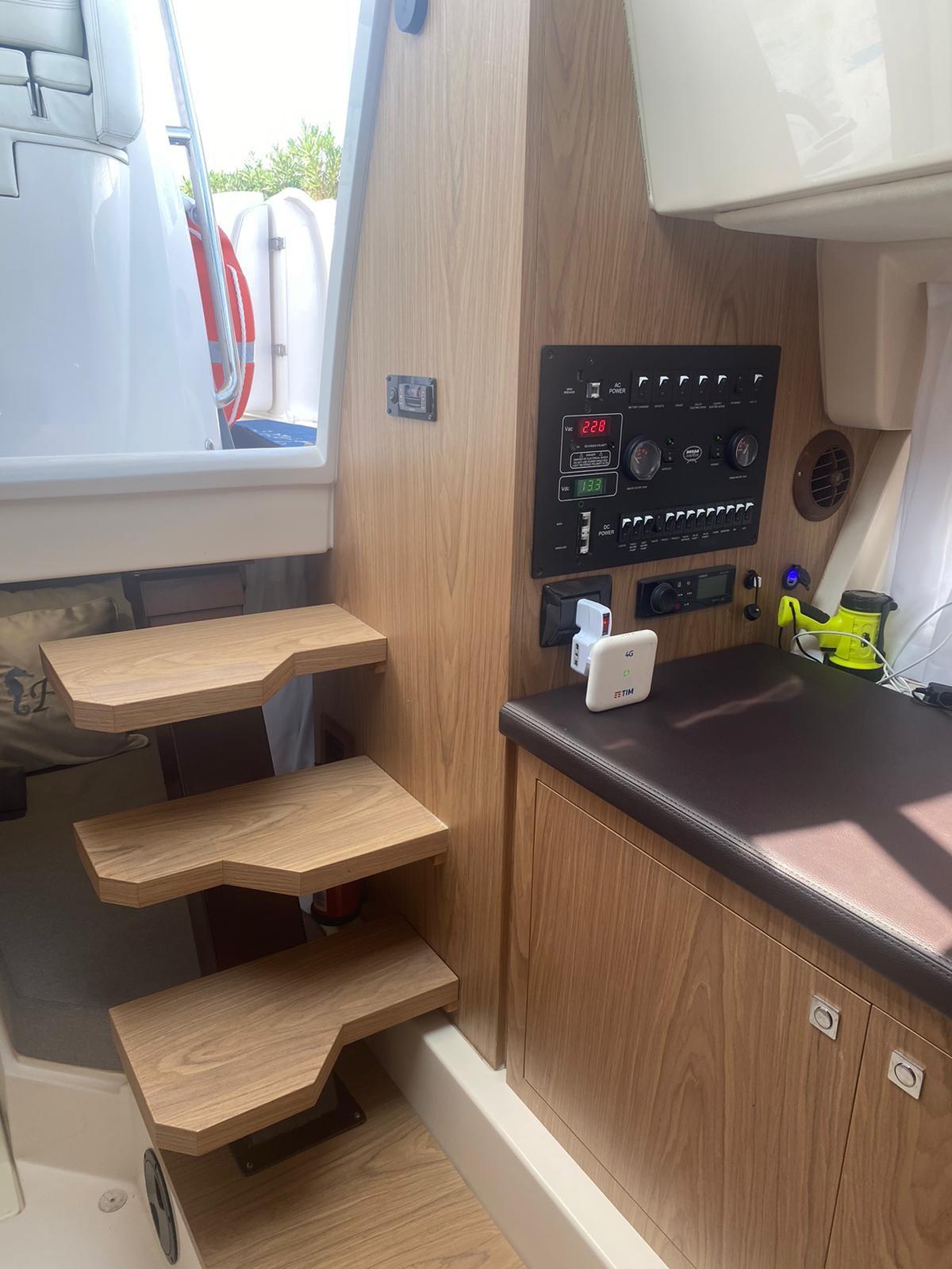 Rudder angle indicator, Electronic engine control, On-Board Computer, Chain counter, Plotter with GPS antenna, Co-pilot seat.