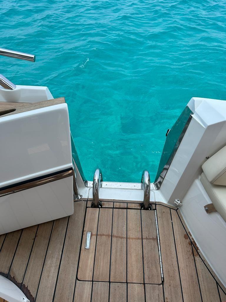 Engine Alarm, Bilge Alarm, Anchor (CON 70 METRI CATENA), Water pressure pump, Teak Side Decks, Special Colour (SCAFO BIANCO 2023), Deck Shower, Electric Flaps (A STABILIZZAZIONE AUTOMATICA), Flaps Indicators, Washbasin in the cockpit, Courtesy Lights (QUICK A LED 2020), Automatic Bilge Pump, Manual Bilge Pump, Side door, Teak Cockpit, Shorepower connector, Electric Windlass, swimming ladder, cockpit table, guard rails with gates, Horn, T-Top.