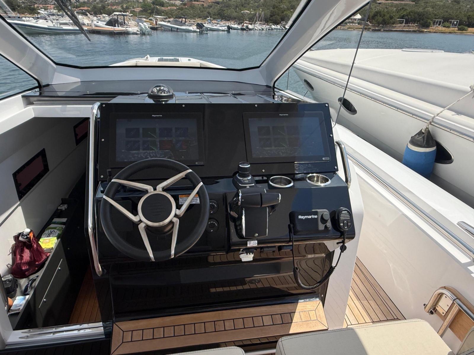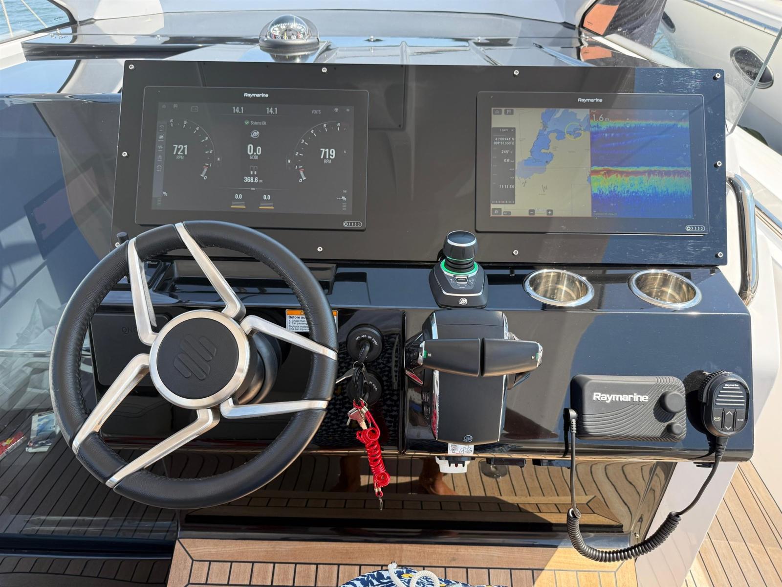 Rudder angle indicator, On-Board Computer, Chain counter, Display, Joystick, Plotter with GPS antenna (RAYMARINE n. 2 monitor da 16"), Co-pilot seat.