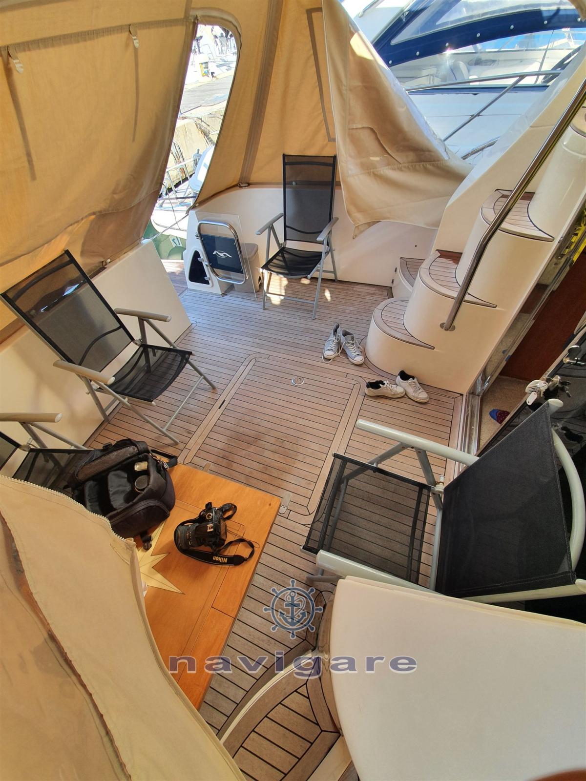 Engine Alarm, Bilge Alarm, Water pressure pump (con impianto rifatto nel 2018), Deck Shower, Hydraulic Flaps (con indicatori BENNETT), Courtesy Lights, Underwater lights (2019), Gangway, Automatic Bilge Pump, Teak Cockpit, Shorepower connector, Water harbor connector system, Electric Windlass, swimming ladder, Tender (ZAR MINI CON MOTORE 6 CV), Horn.