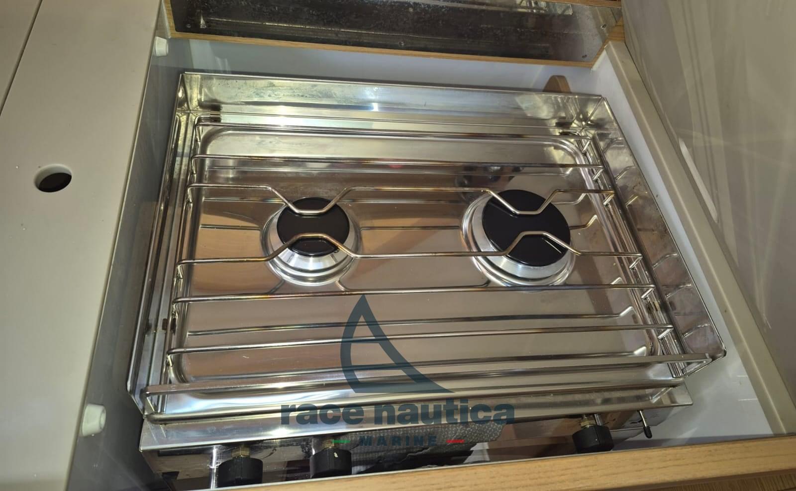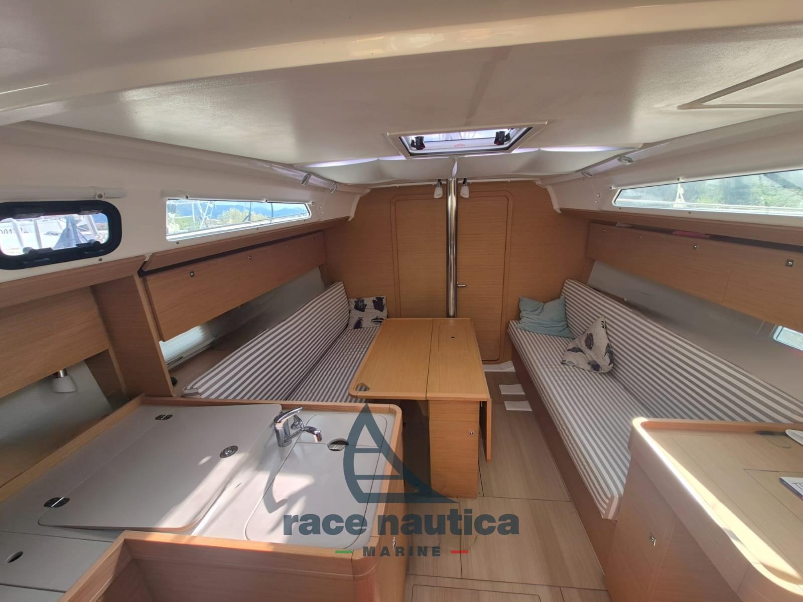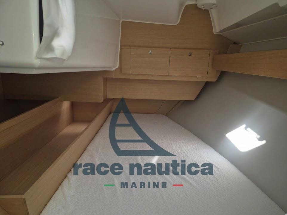 Dufour Yachts 360 from 2021, in excellent condition, available for visits in Liguria. Version 2 cabins + 1 bathroom, oak interiors. Teak in cockpit, Bimini, Canopy, Cockpit cushions, Engine supplement 29 HP Sail-drive, Raymarine i70s navigation station in cockpit port side, Raymarine Evolution autopilot with rotary Lewmar engine and P70S control instrument, Raymarine GPS 7" in the central external table, VHF DSC Ray50, Winch AR T40 for mainsheet, Genoa, Gennaker (including German mainsheet), Barbecue aft, Jennaker equipment with fixed bowsprit in the bow, Additional large opening porthole in the aft cabin (port side cockpit), Steel wheelhouses (leather), Sink in the cockpit, Bow protection in stainless steel, Bimini in chiné color, Danforth anchor with chain diameter 10 + rope, 6 fenders, 3 mooring lines, Motor propeller with fixed blades, Standard seawater pump, Two-burner stove like new. Tachometer to be replaced.
