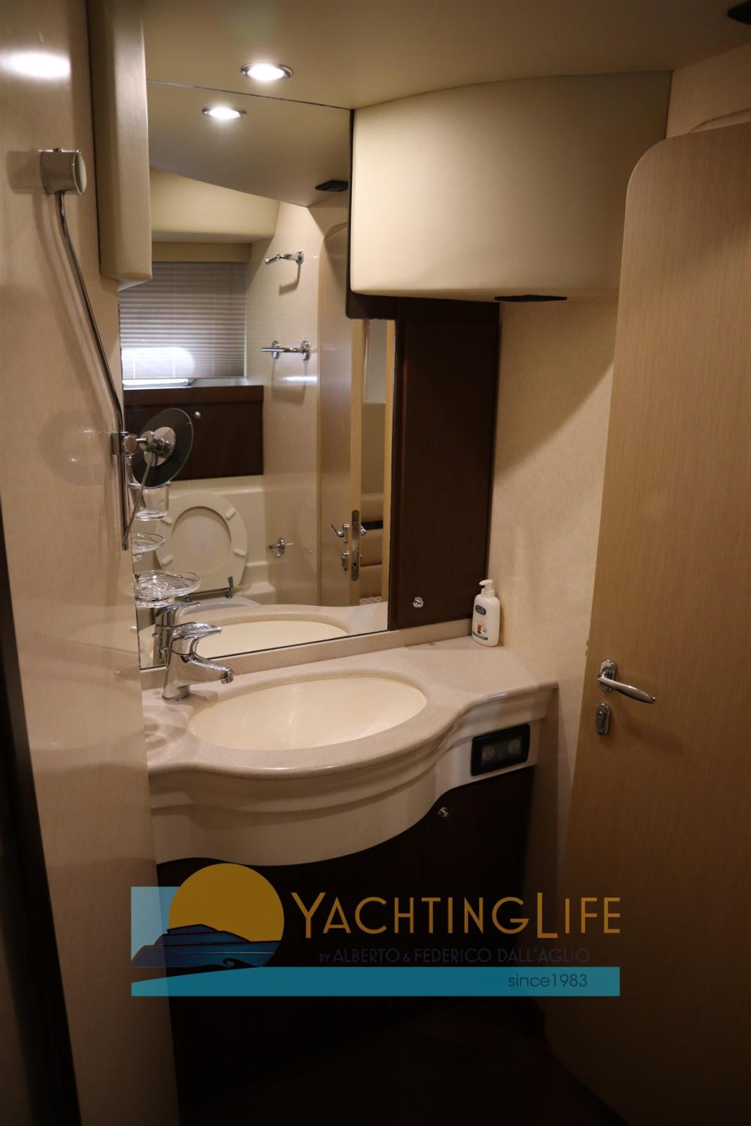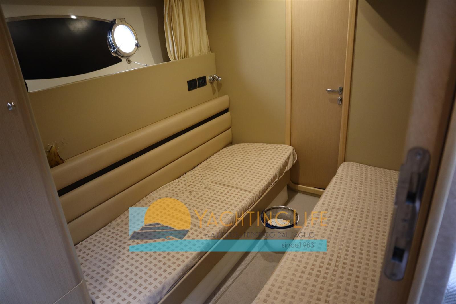 Excellent condition - Clear interior - Third station - Construction 2004 on 2005 model - Plexiglass on the fly replaced - Teak on the ground on the fly - Winter 2020: cleaning of exchangers and pumps, new carpet, replaced bimini tubulars oversized with recessed LED lights, bedspreads and headboards, replaced third station throttle - 2023 bushings sealed PSS 2025 - Balanced propellers - Hydraulic gangway grating replaced - Currently in the bathroom of the internal sailor cabin is housed the washing machine - GPS Fly new