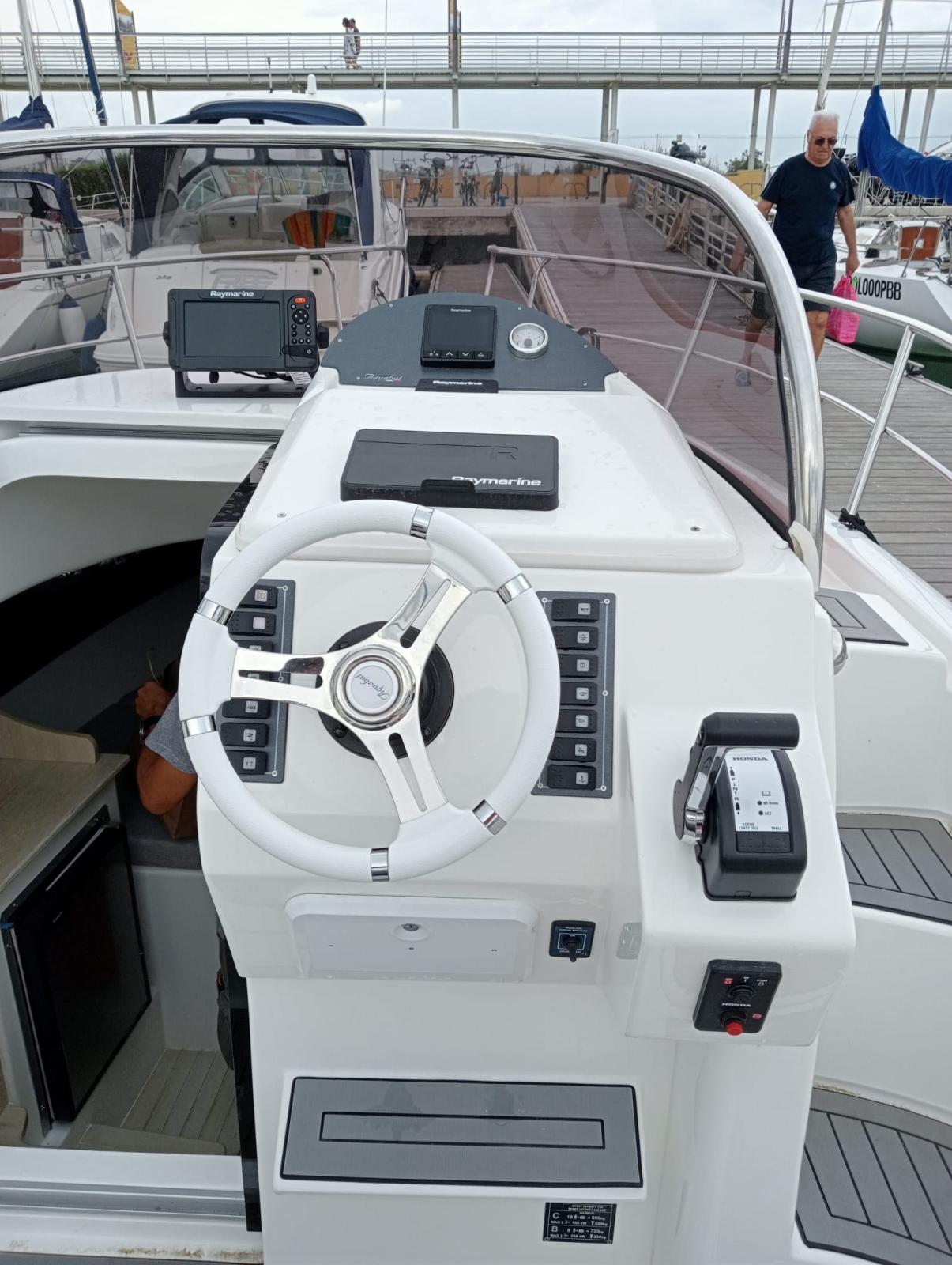 Rudder angle indicator, Electronic engine control, On-Board Computer, Display, DSC vhf, Plotter with GPS antenna.