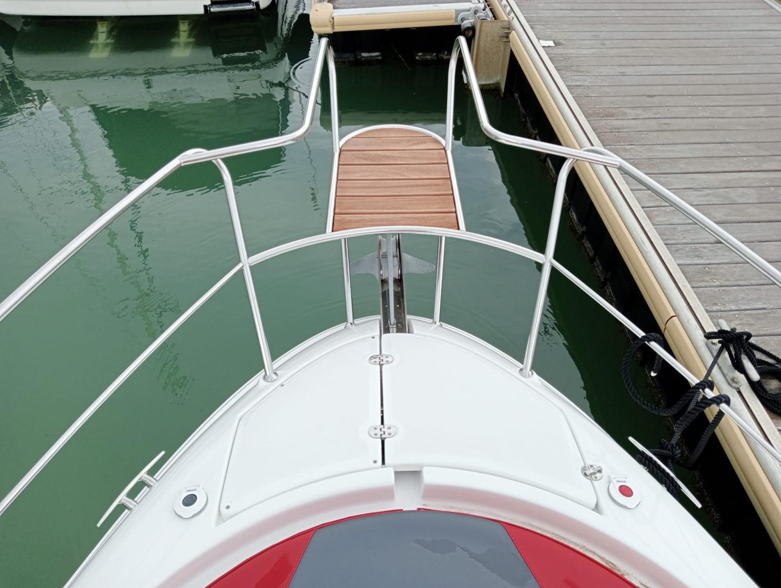 Engine Alarm, Water pressure pump, 3 Batteries, Special Colour, Deck Shower, Automatic Bilge Pump, Shorepower connector, Electric Windlass, swimming ladder, cockpit table.