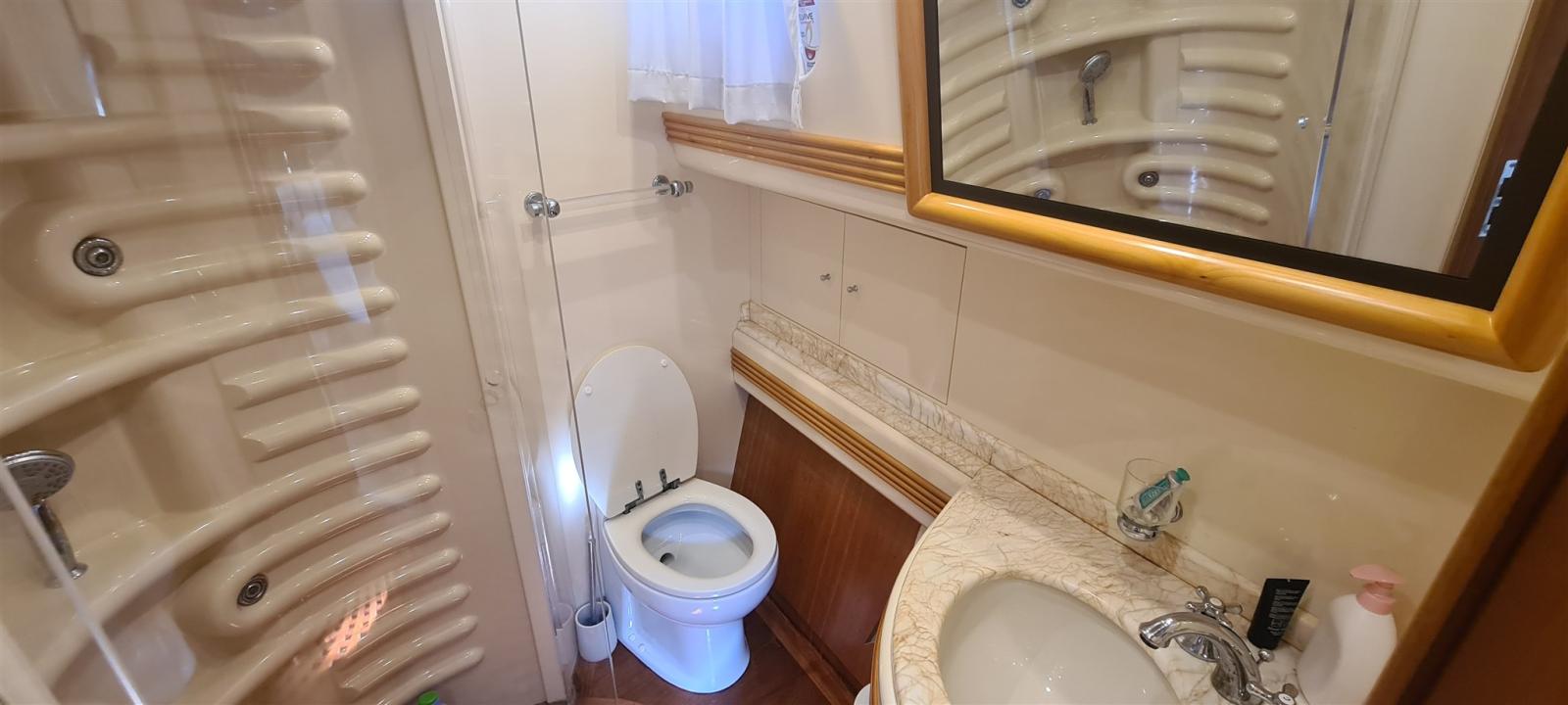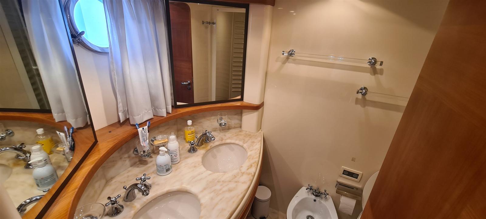VIP cabin in the bow with bathroom and walk-in closet - 2 twin/double cabins plus third retractable coach bed with bathroom - owner's cabin centerboat with bathroom and walk-in closet