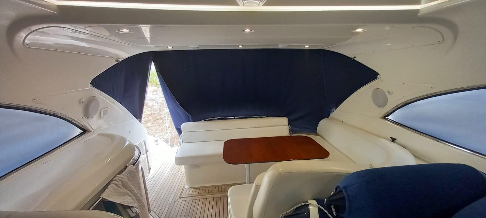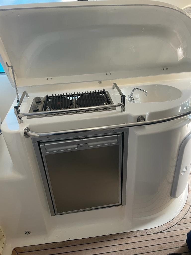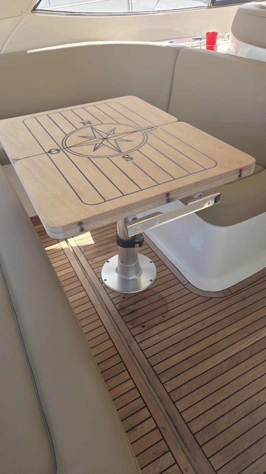 Engine Alarm, Water pressure pump, Hydraulic Flaps, Flaps Indicators, Washbasin in the cockpit, Courtesy Lights (Led), Gangway (idraulica), Platform (maggiorata in teak), Entry door, Teak Cockpit, Shorepower connector, Water harbor connector system, Rollbar, Electric Windlass, swimming ladder, Living Room Foldable Table, Horn.