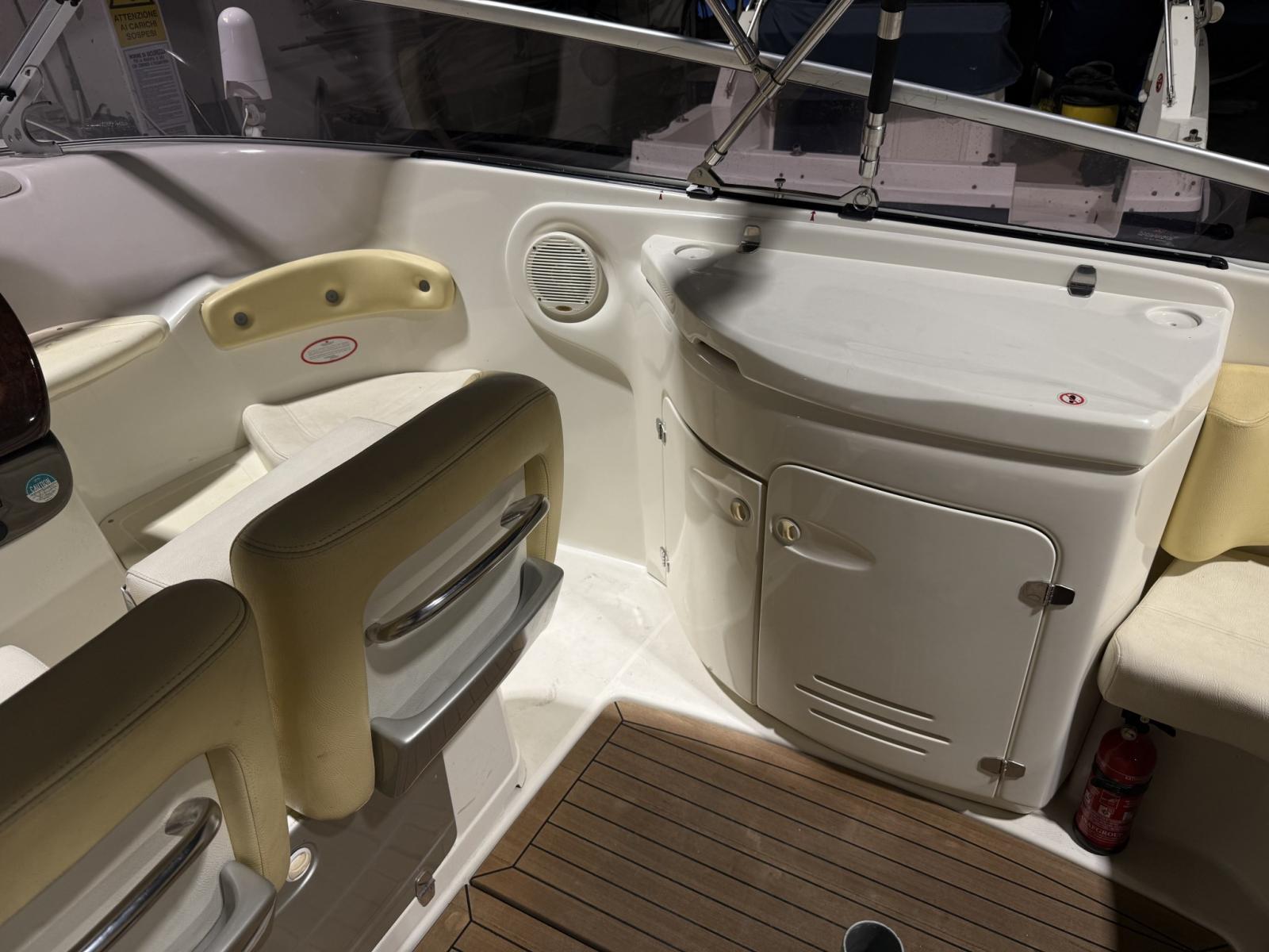 Engine Alarm, Water pressure pump, Shore power cable, Deck Shower, Platform, Automatic Bilge Pump, Teak Cockpit, Shorepower connector, Electric Windlass, swimming ladder, Horn.