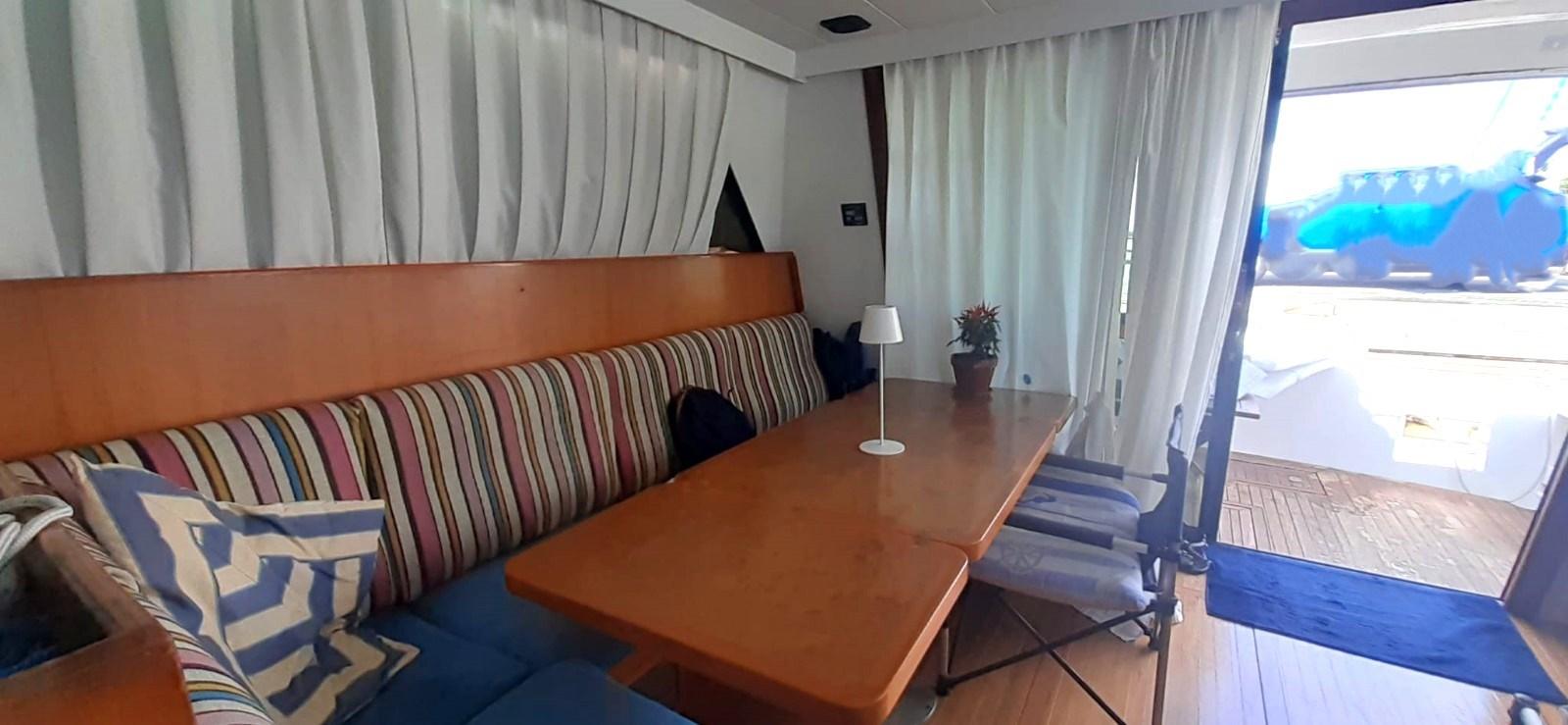 Engine Alarm, Bilge Alarm, Anchor (70m di catena 2015), Spare shaft, Water pressure pump, 5 Batteries (nuove 2022), Battery charger (60 ah nuovo 2015), Deck Shower (con miscelatore caldo/freddo), Twin Steering, 2 Secondary Propeller, 2 Hydraulic Flaps (maggiorati), Flaps Indicators, Courtesy Lights (Full led), Gangway (elettrica), Platform, 4 Automatic Bilge Pump, Entry door, Teak Cockpit, Shorepower connector, Rollbar, Electric Windlass (nuovo 2015), swimming ladder, Horn.