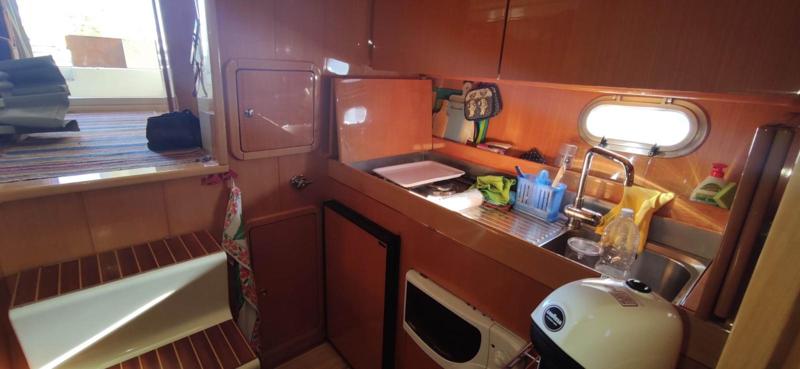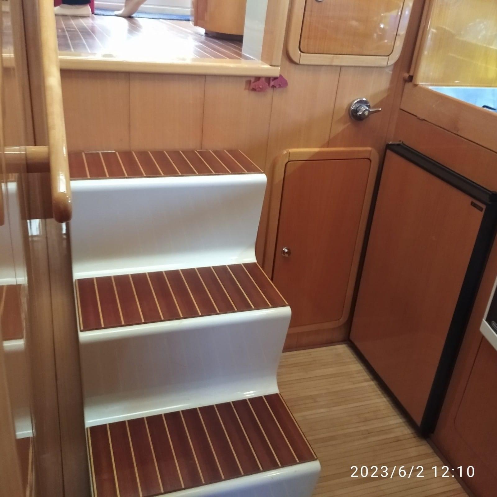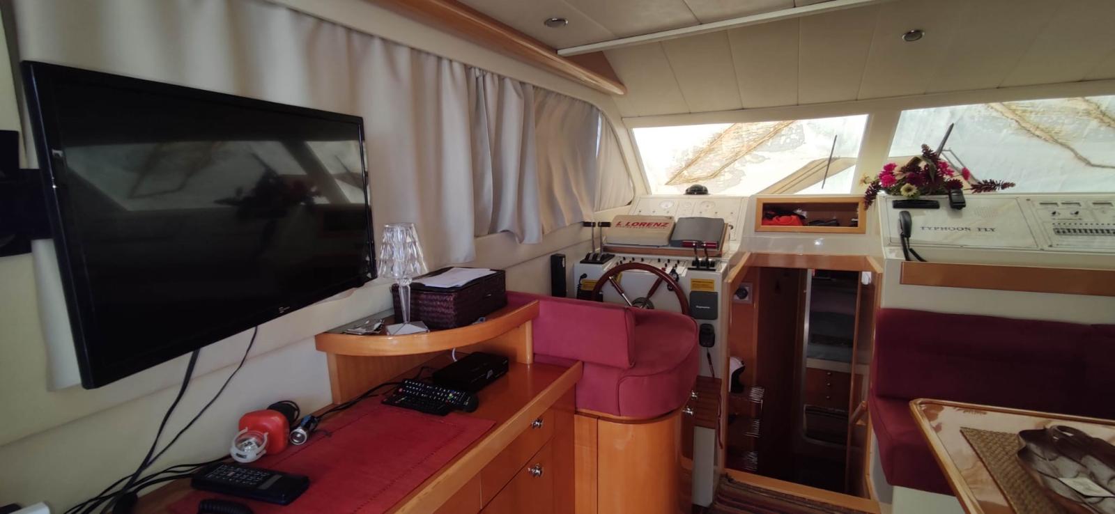 Engine Alarm, Water pressure pump, 4 Batteries, Deck Shower, Twin Steering, 2 Secondary Propeller, Hydraulic Flaps, Flaps Indicators, Courtesy Lights, Gangway (idraulica Besenzoni), Platform, Manual Bilge Pump, Entry door, Teak Cockpit, Shorepower connector, Electric Windlass, swimming ladder, Horn.