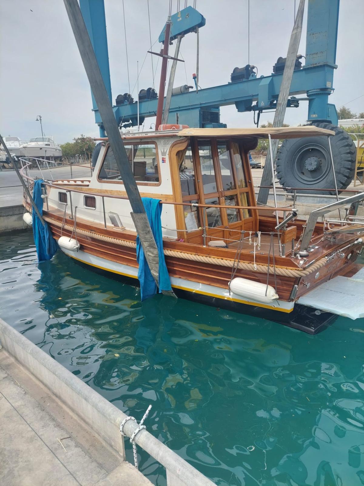 Boat in mahogany planking covered with resin, cared for and completely refitted in 2008 with new engines.