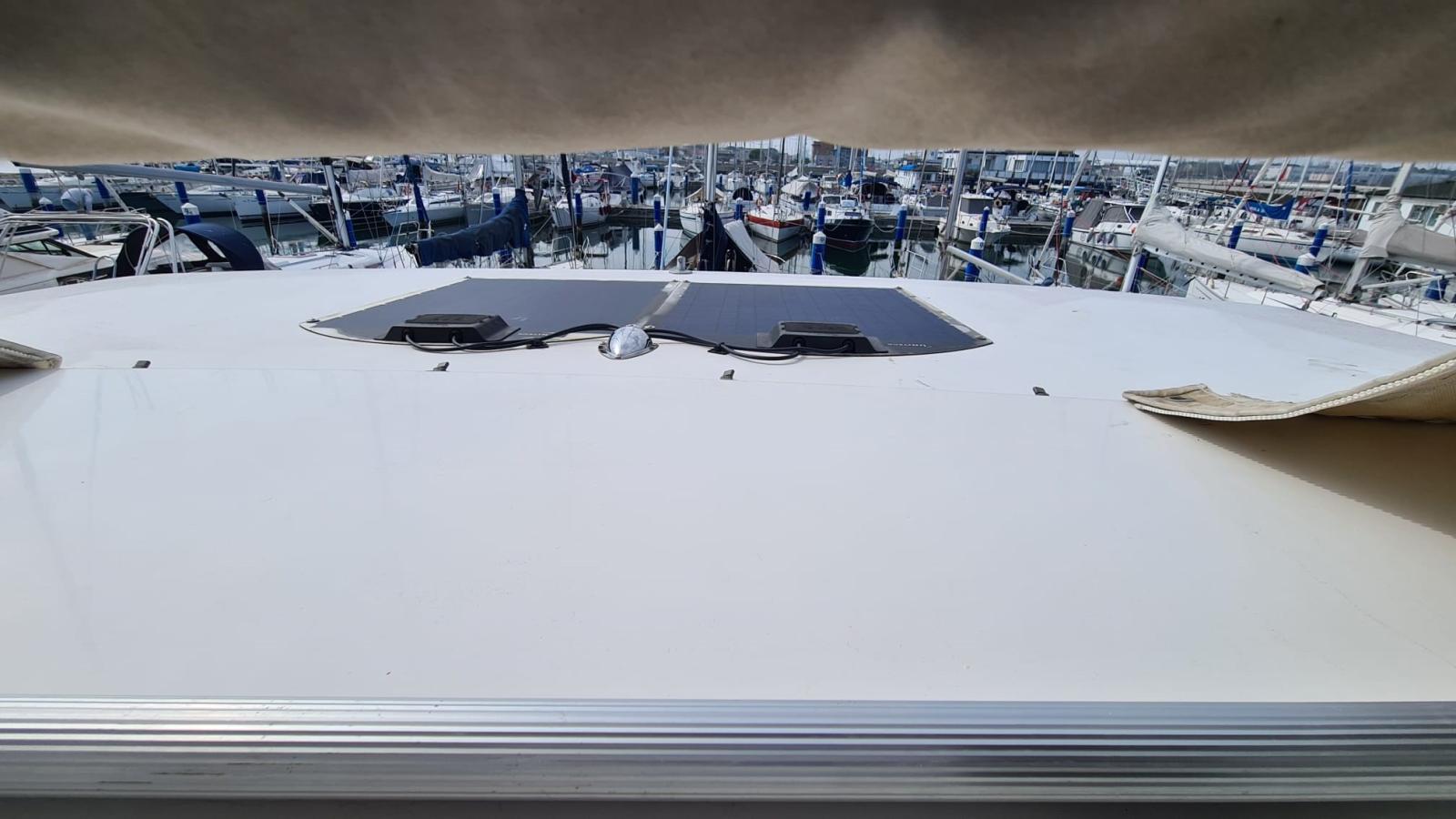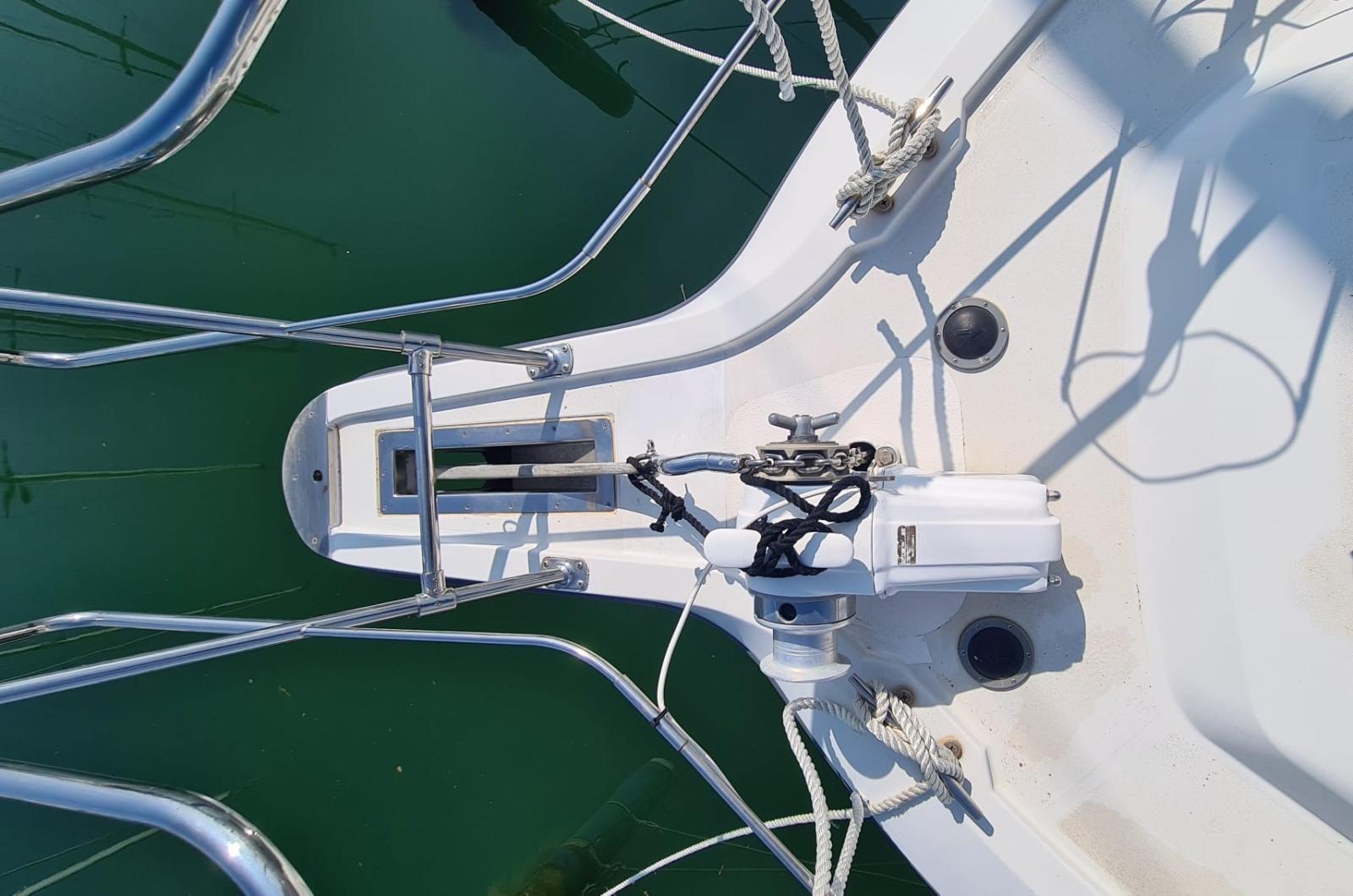 Anchor (con 50 m catena inox 2019), Water pressure pump (nuovo 2023), 5 Batteries (nuove 2023), Deck Shower, Courtesy Lights, 2 Solar panels (2019), Gangway, Platform, Automatic Bilge Pump, Entry door, Shorepower connector, Water harbor connector system, Electric Windlass, swimming ladder, cockpit table, Tender, Bow Winches.