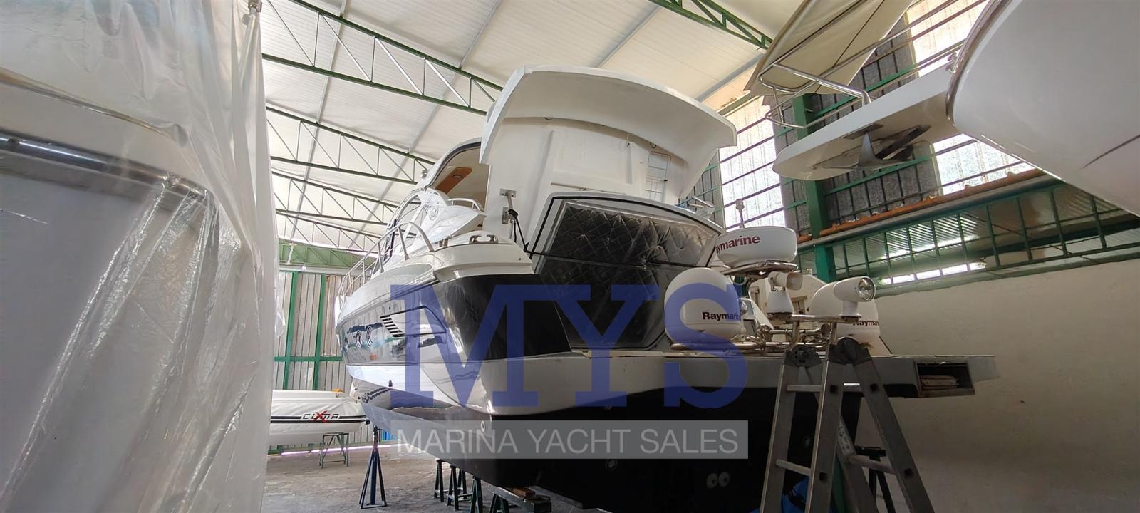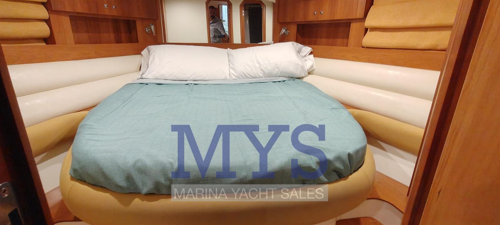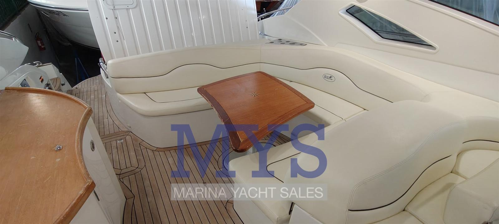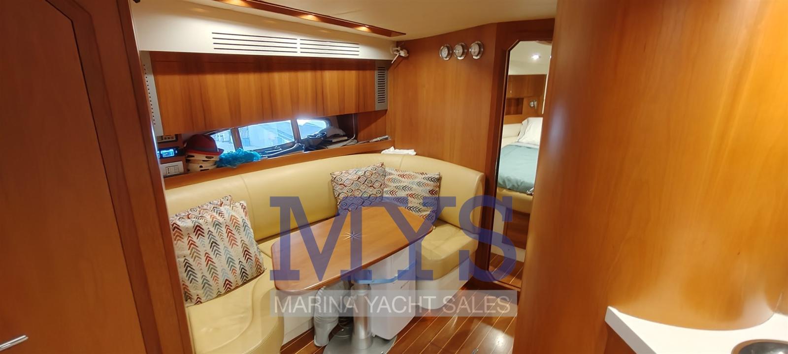 Bilge Alarm, Electric Engine Compartment Opening, Water pressure pump, Teak Side Decks, Shore power cable, Guard rail, Deck Shower, Directional Spotlight, Electric Flaps, Tender Garage, Hard top (apribile elettricamente), Flaps Indicators, Washbasin in the cockpit, Courtesy Lights (interne), Underwater lights, Gangway (gandola), Platform, Entry door, Teak Cockpit, Shorepower connector, Water harbor connector system, Electric Windlass, swimming ladder, cockpit table, Living Room Foldable Table, Horn.