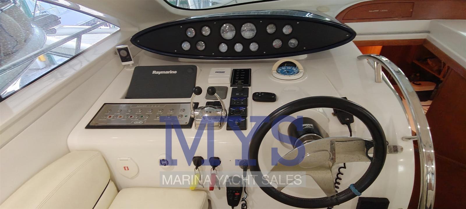 Radar Antenna, Electronic engine control, Chain counter, DSC vhf, GPS (Raymarine 12"), Control panel.