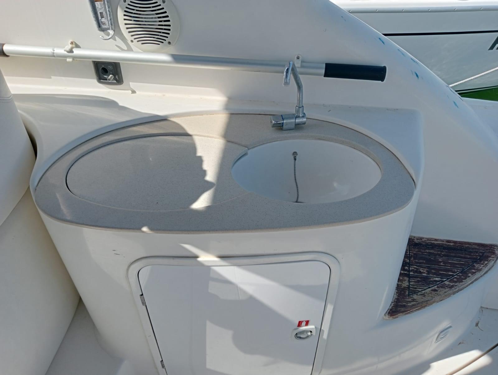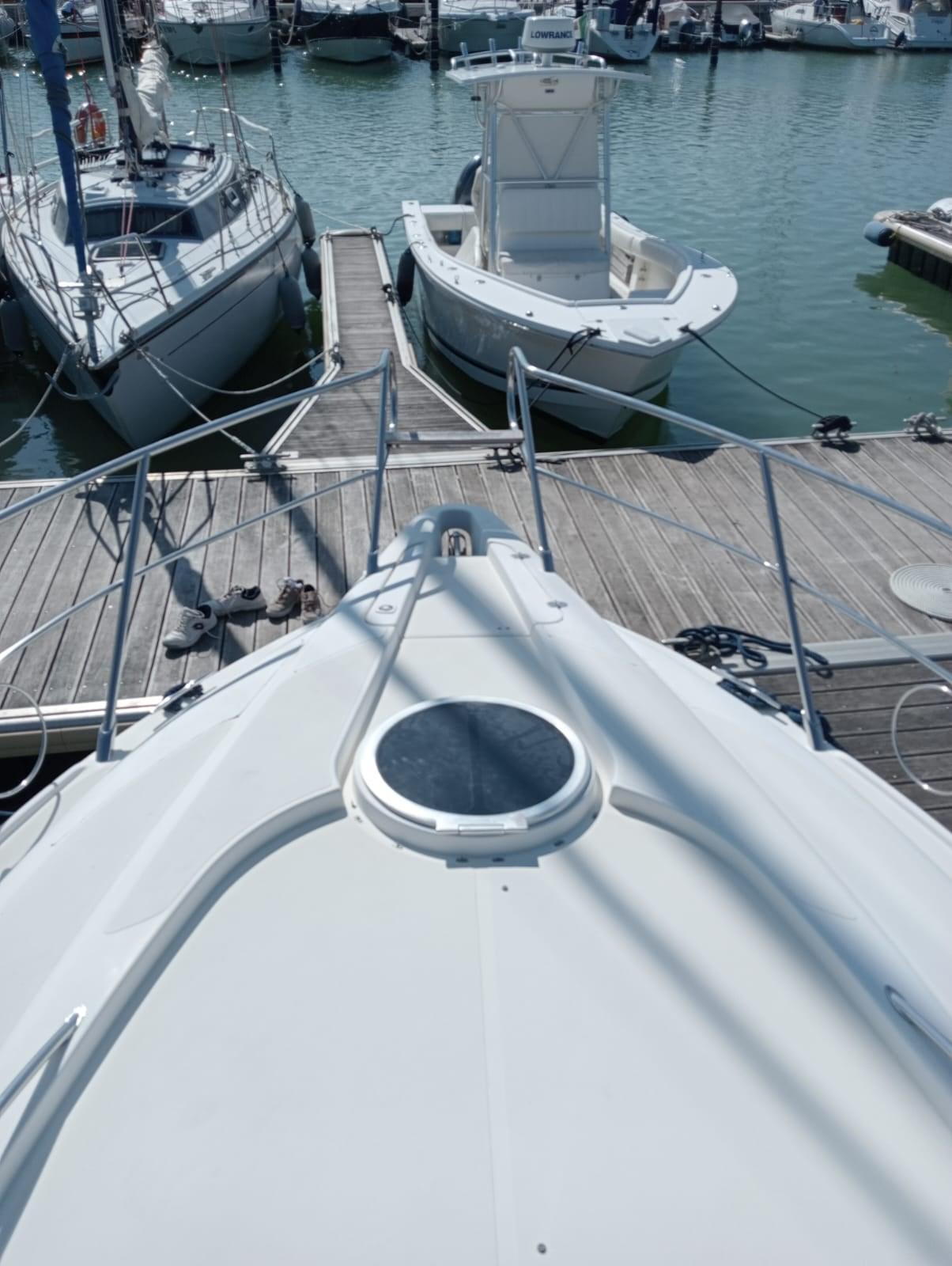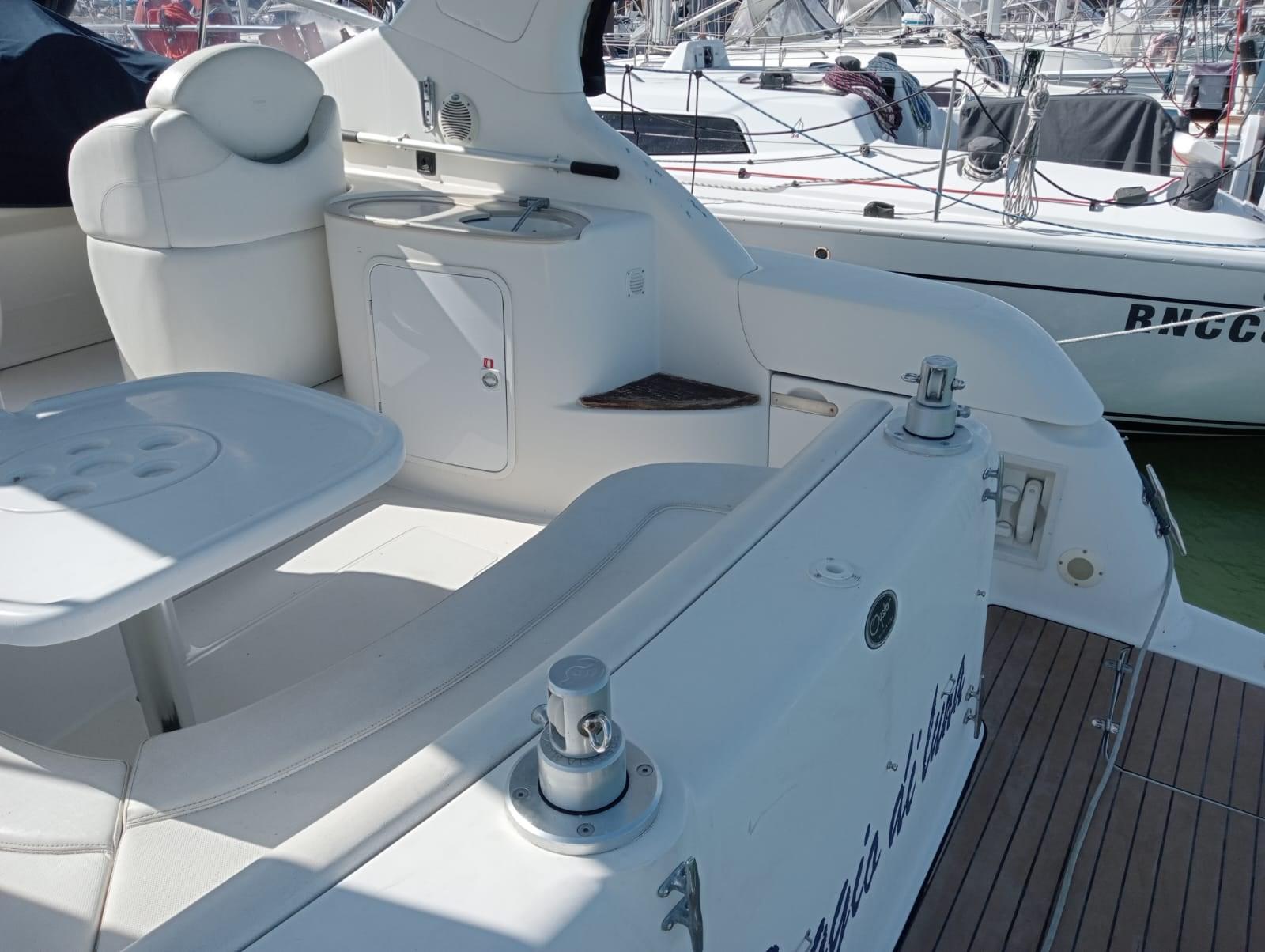 Engine Alarm, Water pressure pump, 3 Batteries (2025 nuove 2 batterie motori), Deck Shower, Electric Flaps, Tender Crane (telescopiche), Flaps Indicators, Washbasin in the cockpit, Courtesy Lights, Gangway (pieghevole ad incastro (nuova )), Platform, Automatic Bilge Pump, Entry door, Shorepower connector, Voltage Rectifier, Rollbar, Electric Windlass, swimming ladder, cockpit table, Living Room Foldable Table, Horn.