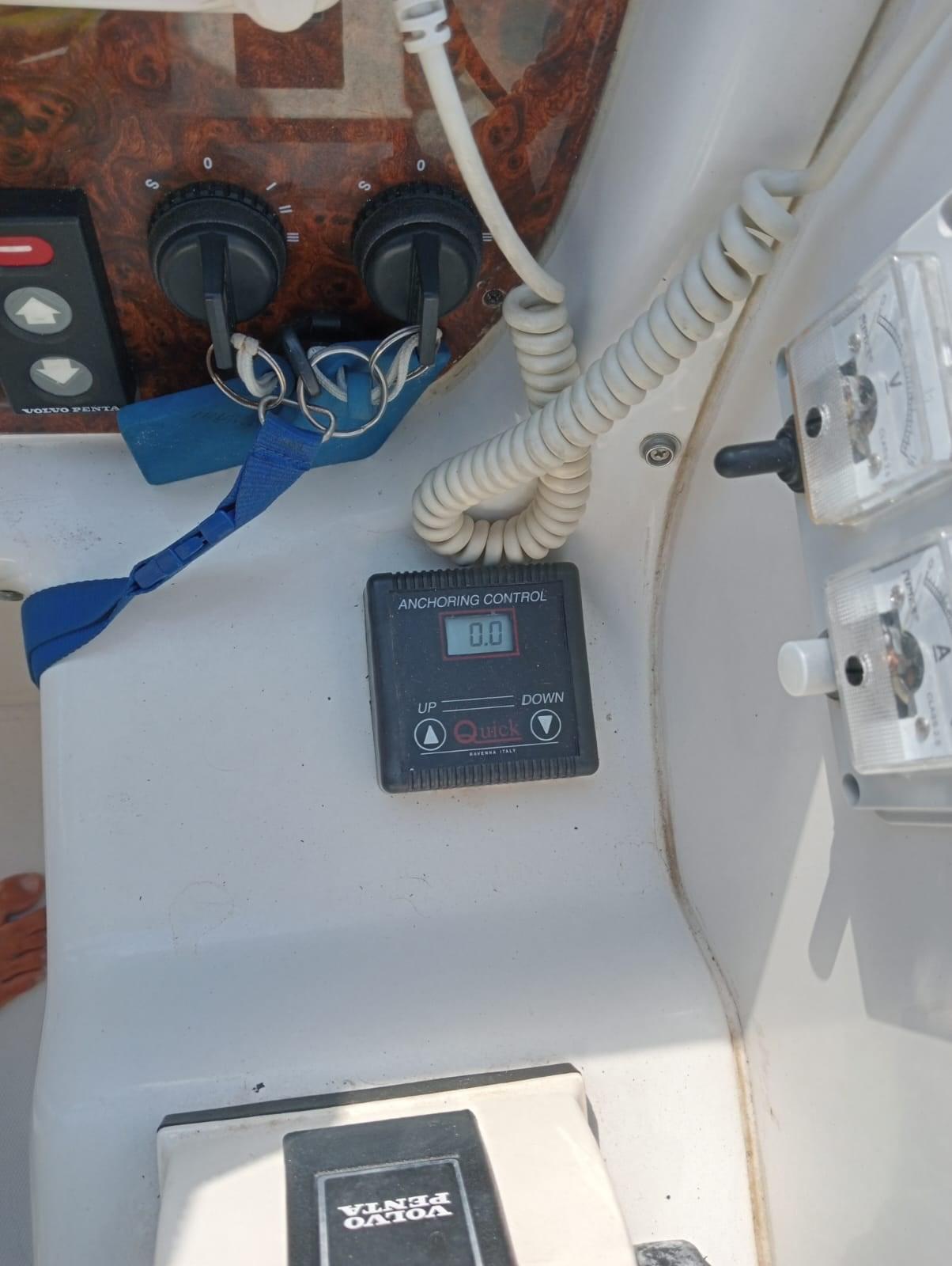 Rudder angle indicator, Chain counter, Display, Plotter with GPS antenna.