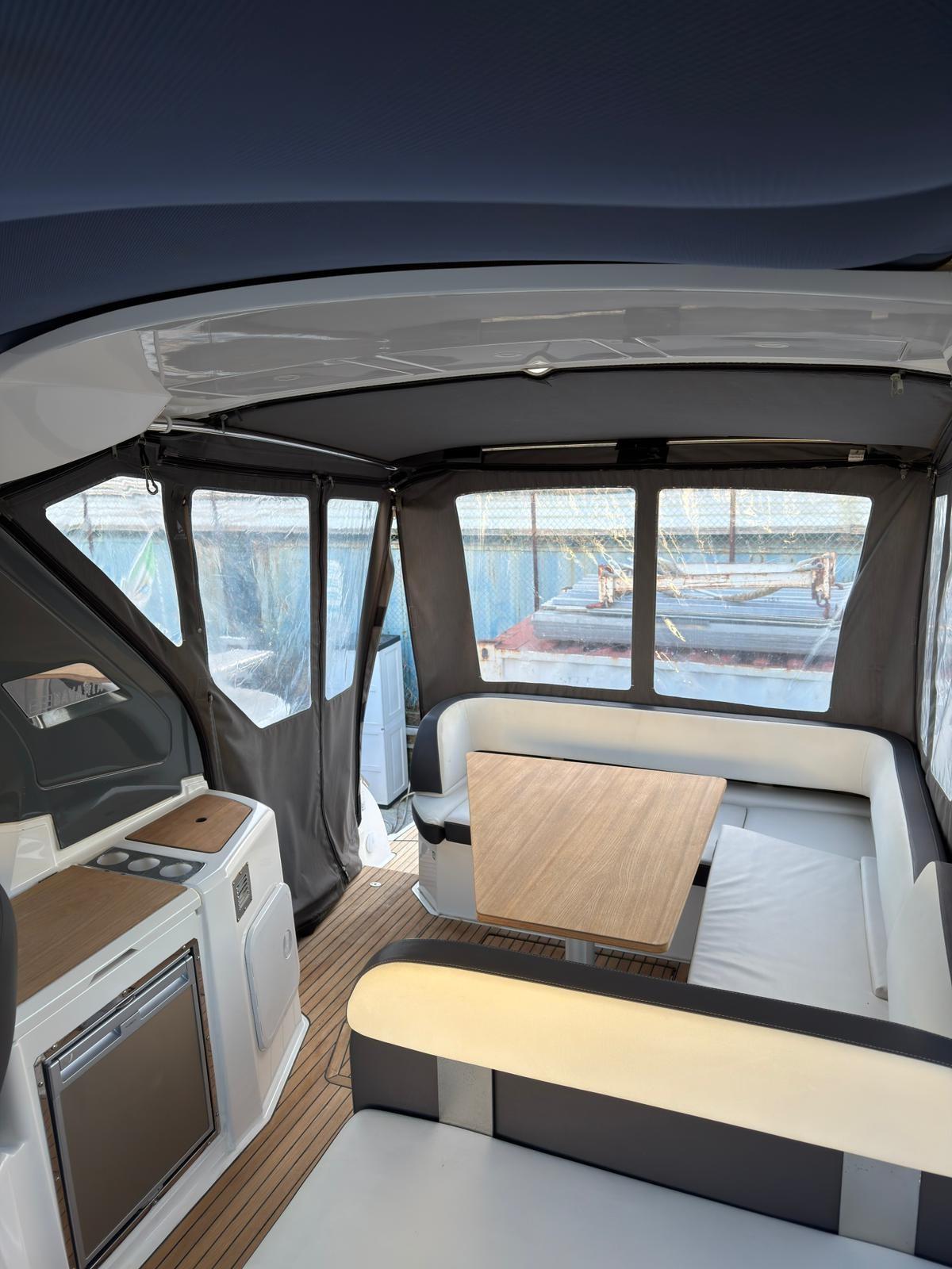 Engine Alarm, Electric Flaps, Hard top, Washbasin in the cockpit, Fenders, Entry door, Teak Cockpit, Electric Windlass, swimming ladder, Horn.