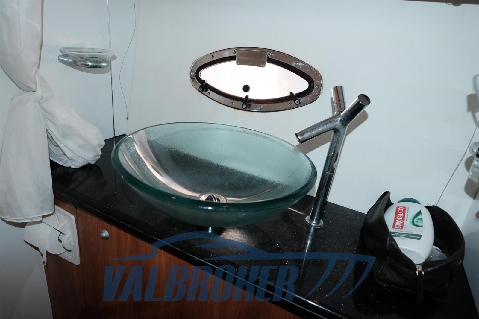 Water pressure pump, 3 Batteries, Special Colour (Blue), Deck Shower, Washbasin in the cockpit, Courtesy Lights, Gangway (teak), Platform (Idraulica teak), Teak Cockpit, Rollbar, Electric Windlass, cockpit table.