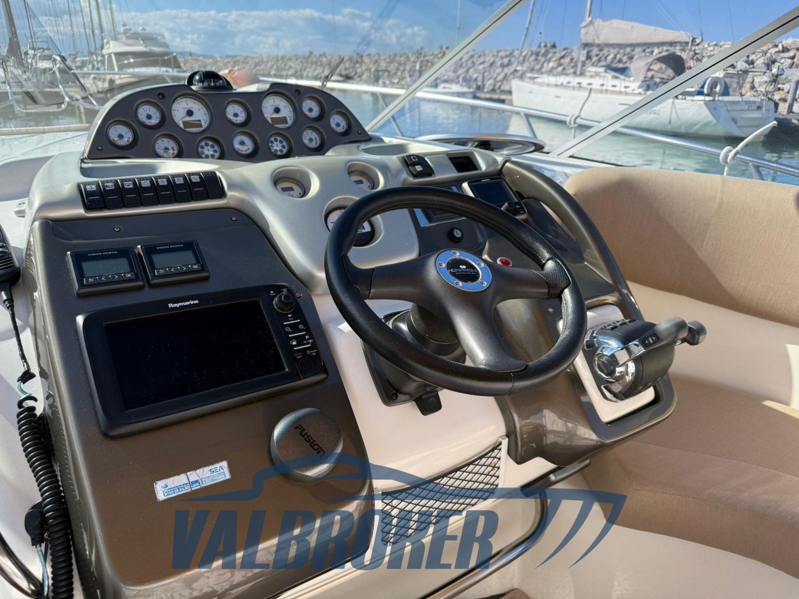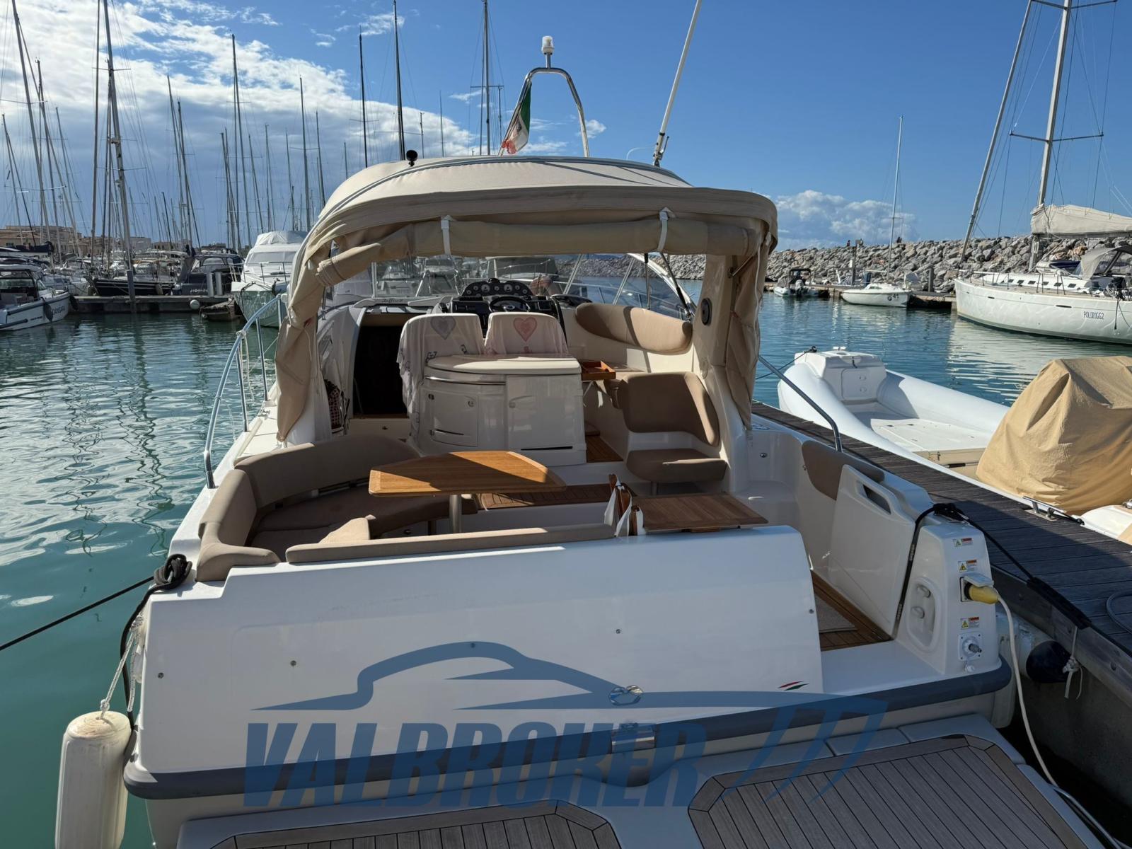 The Cranchi Zaffiro 32 is a cabin cruiser motorboat with excellent performance and low consumption, offering good interior and exterior spaces. Powered by 2x225 HP Volvo Penta D4 common rail turbodiesel. Engine servicing carried out regularly. Below deck there are 6 beds.