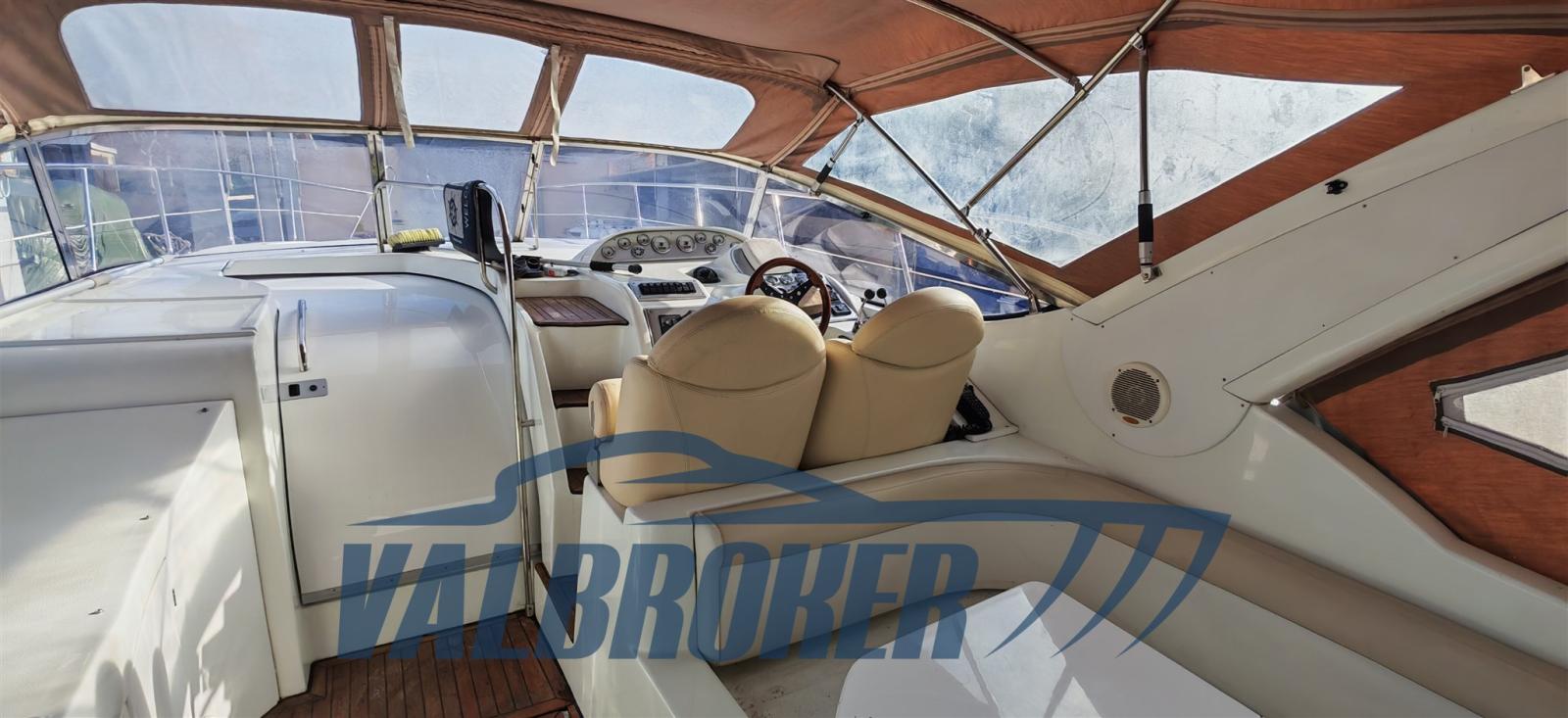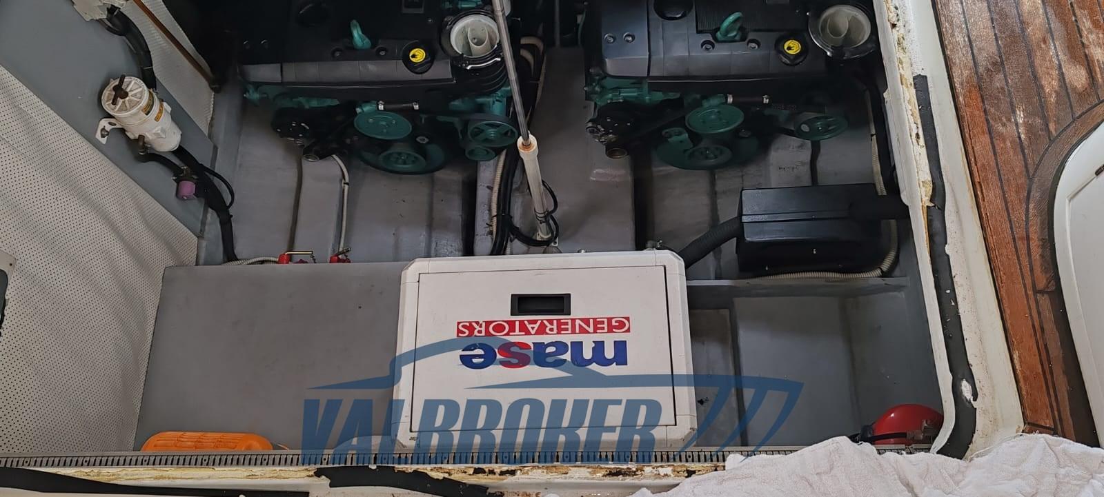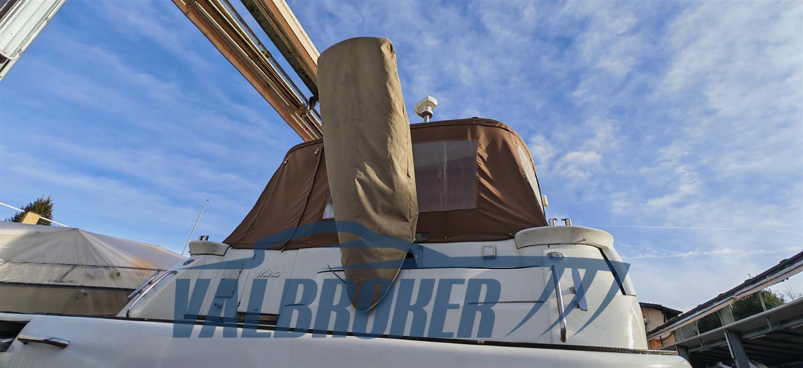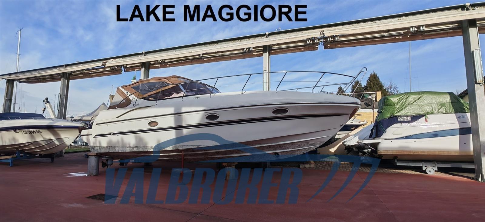 Open view of Lake Maggiore with two double cabins and two bathrooms. Powered by 2x Volvo Penta D4. FULL OPTIONAL: Hydraulic gangway, Mase generator, extended swim platform, Vetus bow thruster, remote control headlight, Quick chain counter, Raymarine autopilot, teak cockpit, Webasto heating. March 2026: preventive anti-osmosis treatment, removal of old antifouling layers, hull brought to zero with sandblasting, complete Stoppani-Lechler cycle, no. 8 coats of epoxy resin and antifouling application on hull and transmissions.